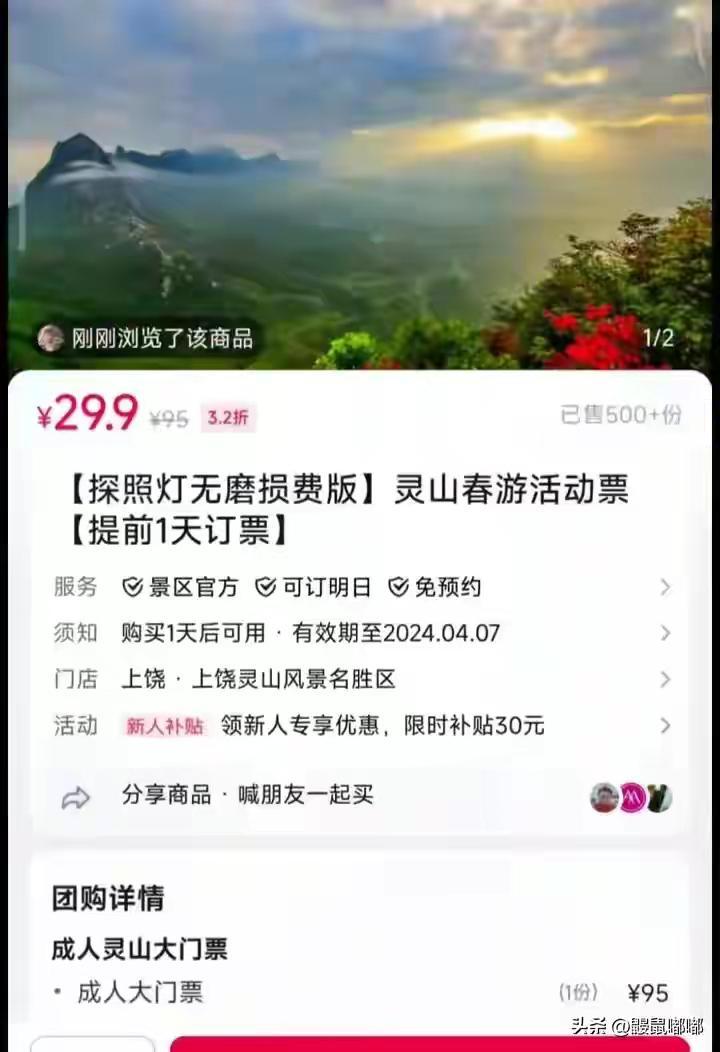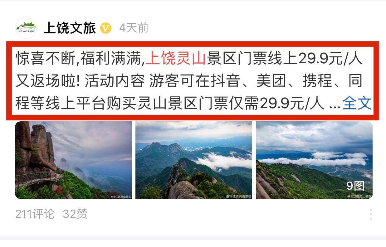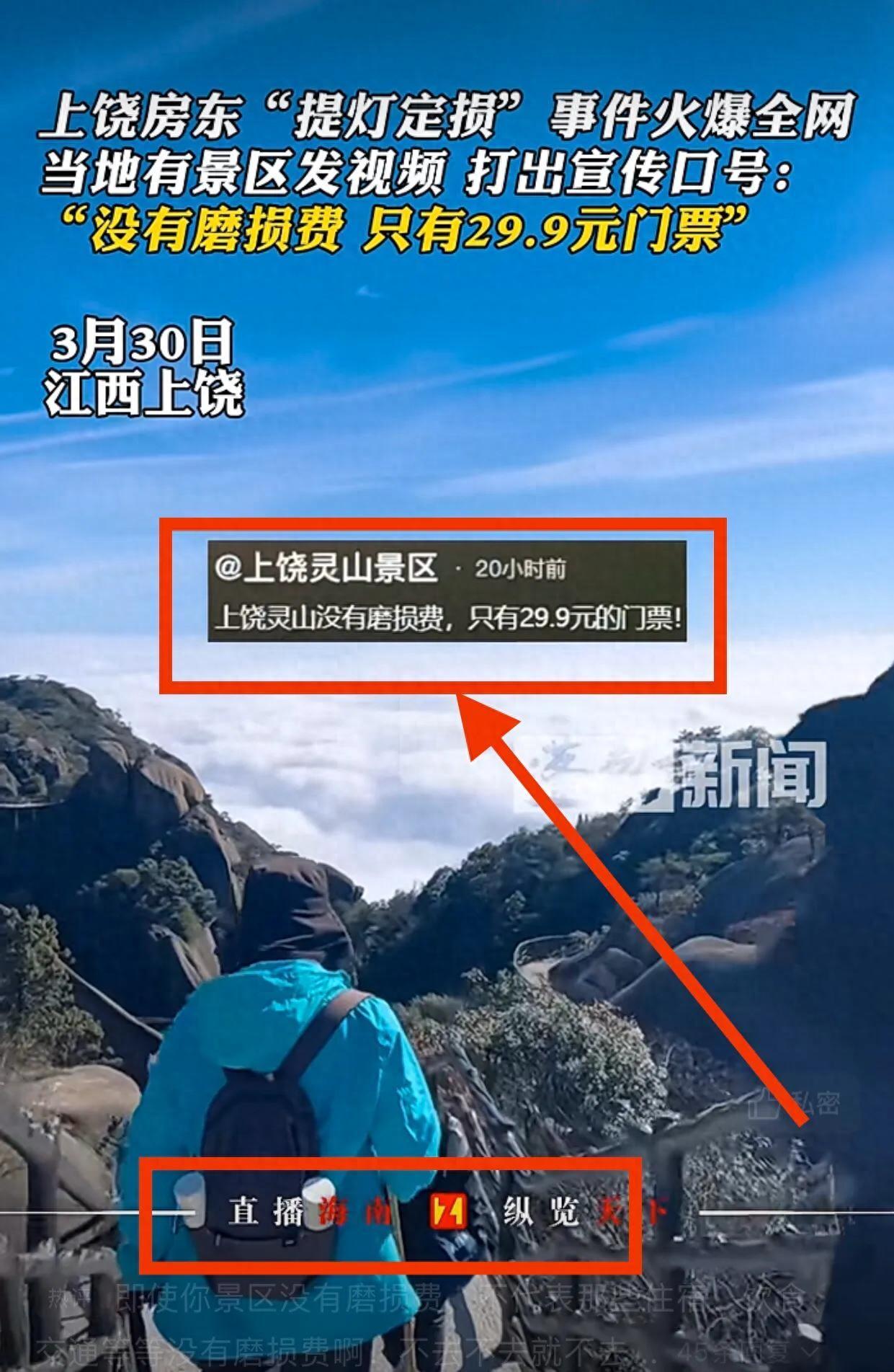 這波潑天流量,本來是一件不光彩事情,根據《直播海南》等多家媒體報道,上饒靈山景區藉助這波流量來個反向宣傳,聲稱上饒靈山景區門票重回29.9元,還喊話全國網友來靈山旅遊,靈山門票只要29.9元,沒有磨損費。