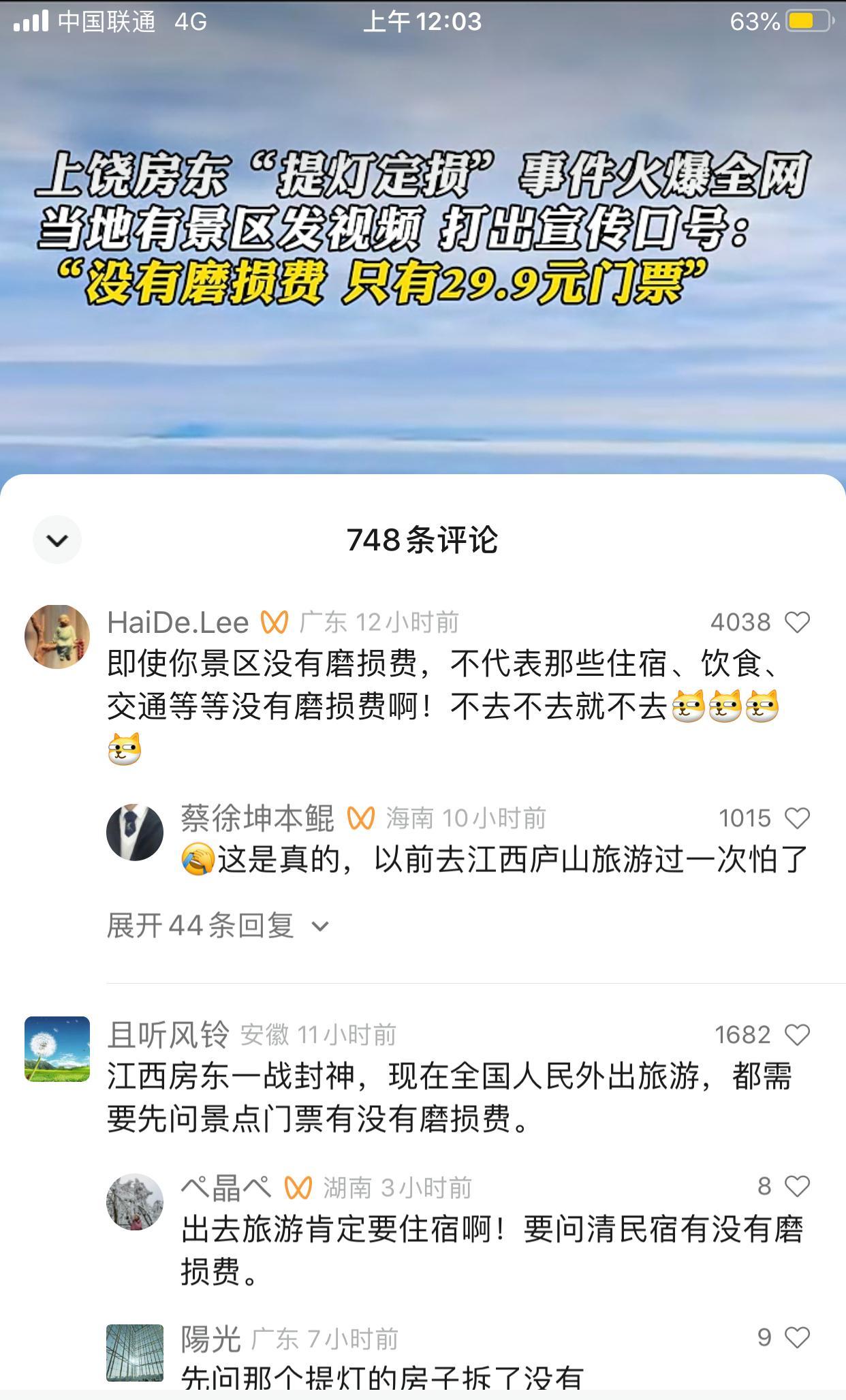 5、江西房東一戰封神,現在全國人民外出旅遊,都需要先問景點門票有沒有磨損費。