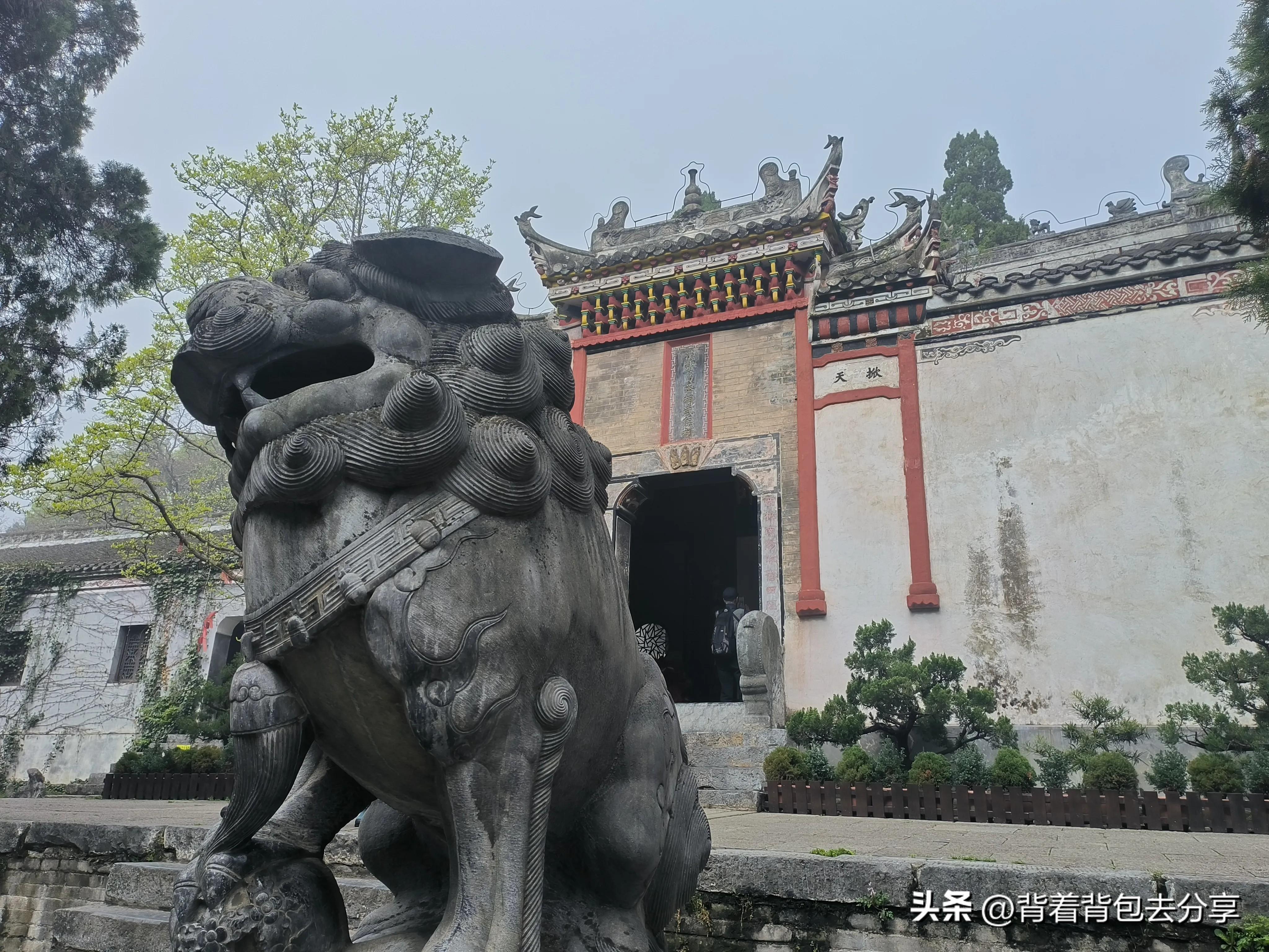 順着蒼松古木中間的臺階拾級而上,彷彿置身於荒郊野嶺,這座祠堂位於山腰之中,始建於東晉,在一干餘年的歷史發展長河中,興廢頻仍,時至清朝康熙年間,觀察使蔣興芑移建於此,進入祠堂,是一座諸葛亮塑像,祠堂內有諸葛亮和夫人黃氏及其子孫,還有劉備-關羽-張飛,以及蜀漢文武大臣等人的塑像,栩栩如生