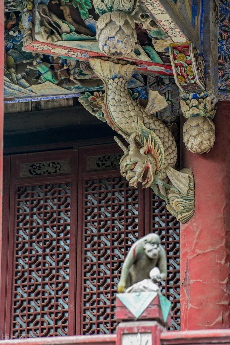 花戲樓,清朝建造的一座戲樓,其雕刻技藝及屋頂彩繪堪稱一絕,精緻美觀,栩栩如生,是我國現存最大最完整的戲樓之一,被稱爲“中國戲樓之冠”。