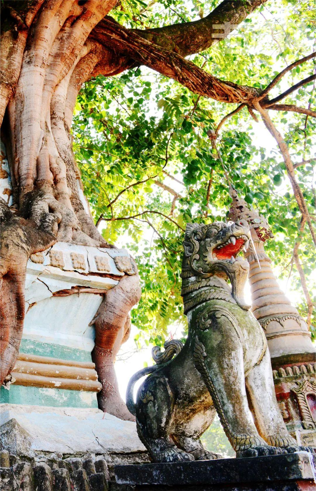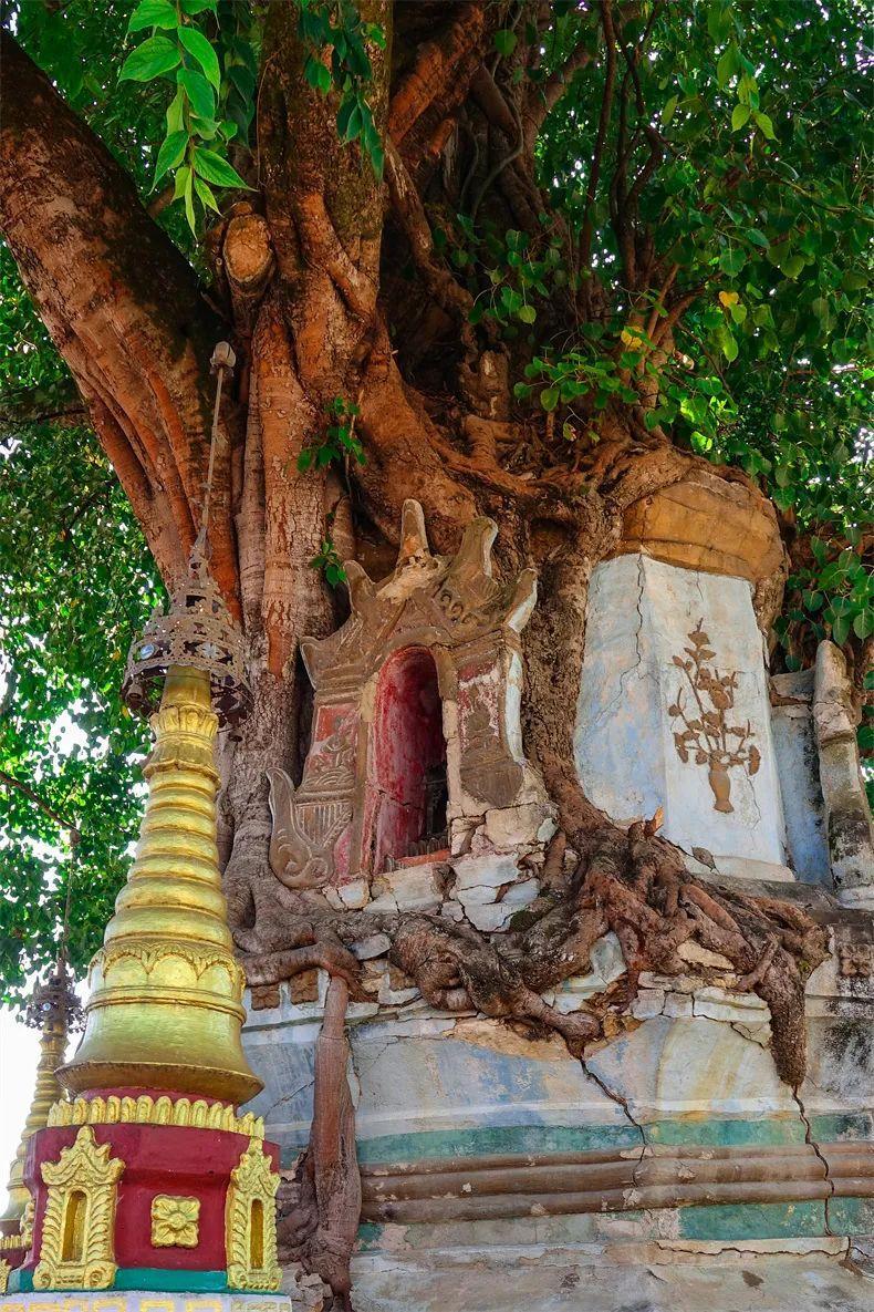 塔身被一棵200多年的菩提樹緊緊纏繞,