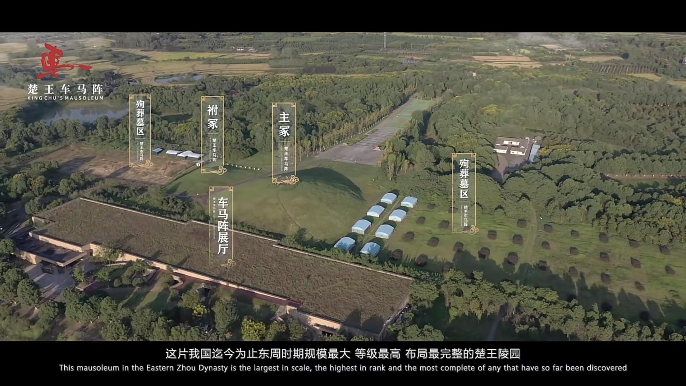 楚王車馬陣景區(熊家冢國家考古遺址公園),北有兵馬俑,南有楚王陵,位於湖北荊州市荊州區川店鎮,距楚故都紀南城約26千米,距荊州古城約35千米。景區佔地面積731畝,核心墓葬區佔地225畝,墓葬區由主冢、祔冢、殉葬墓、祭祀坑、車馬坑五個部分組成,其中包括138座殉葬墓、40座車馬坑和200多座祭祀坑,被譽爲是“中國僅有,天下第一”的楚王陵典範。