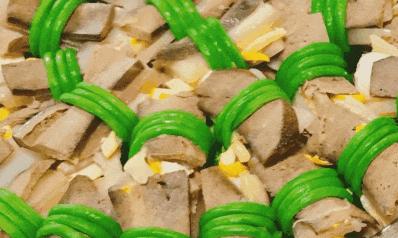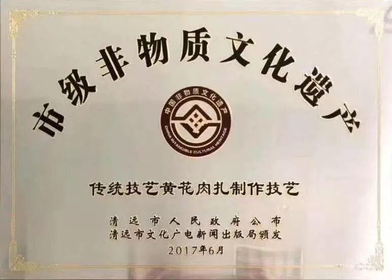 黃花肉扎又叫黃花綁肉扎,起源於清朝太平天國年間,至今已有150多年曆史,2017年入選清遠市非物質文化遺產。