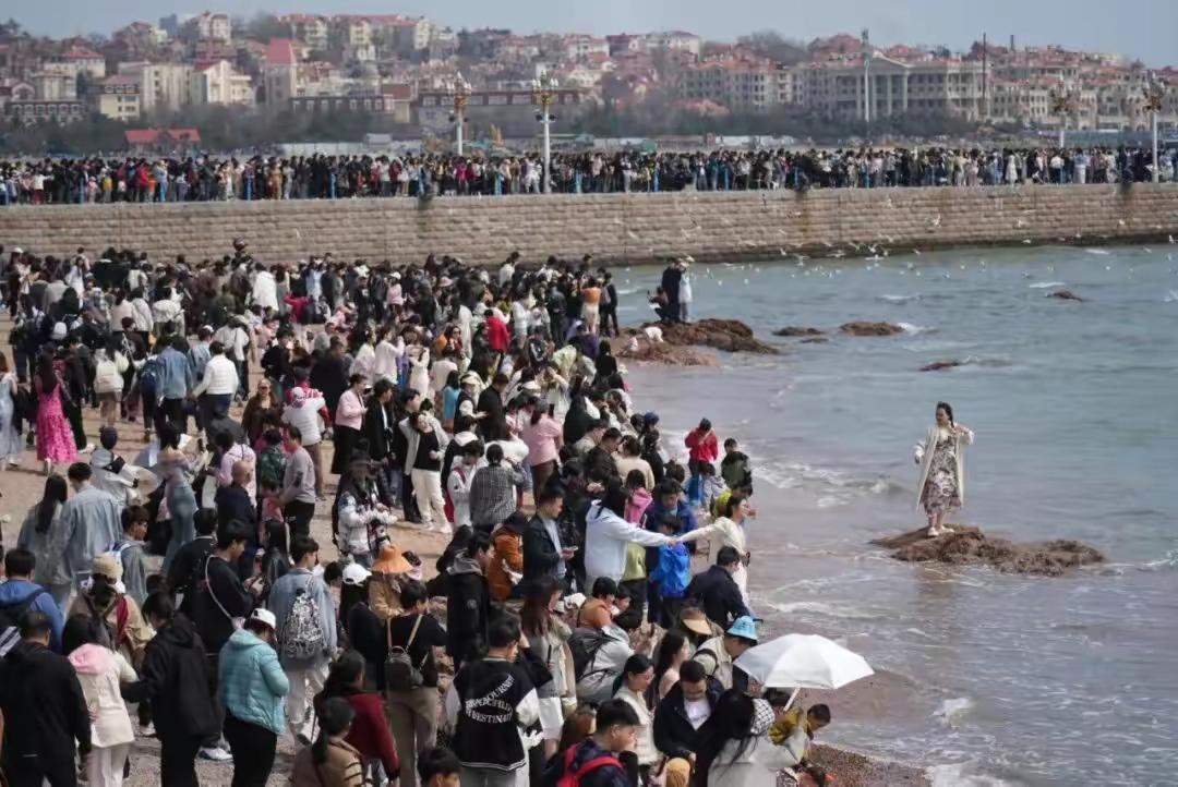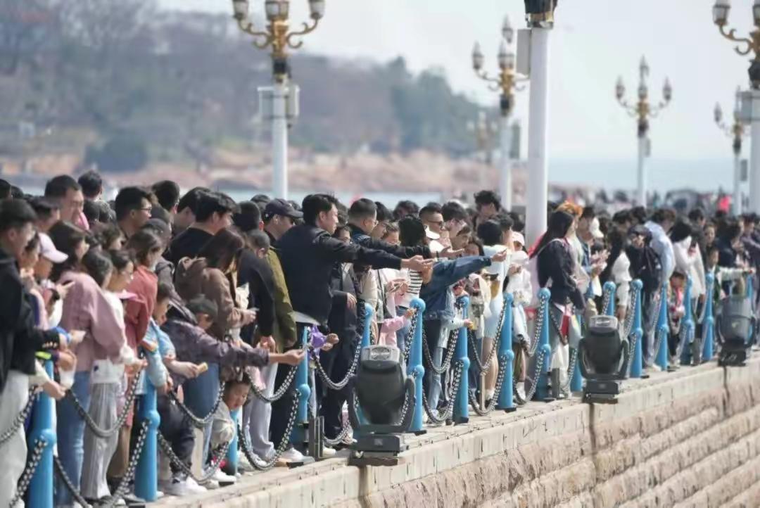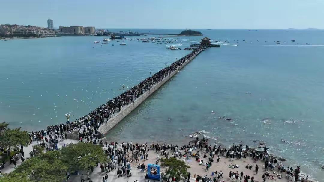 4、青島棧橋:青島旅遊棧橋永遠是第一張名片,外省遊客到青島第一站打卡就是去棧橋,這個假期青島棧橋被圍得水泄不通,遊客人山人海,透過現象看本質,好像有一億遊客在青島。