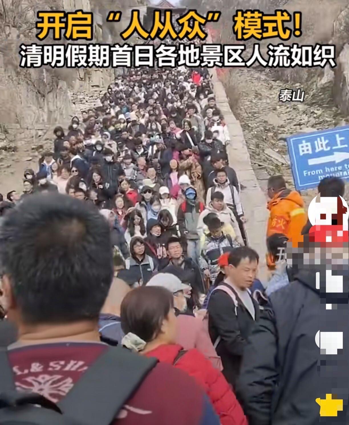 5、山東泰山:位於山東泰安市,歷史文化名山,古代皇帝封禪大典就在泰山舉行,三山五嶽之首,泰山不論是平時還是節假日不缺的就是遊客,清明節假日泰山遊客人潮擁擠,從山腳下賭到山頂,泰山清明節假期單日接待3.92萬人次遊客,遊客戲稱自己爬啦七千多級臺階,誤以爲是六大門派圍攻光明頂,也有網友說是丐幫大會。