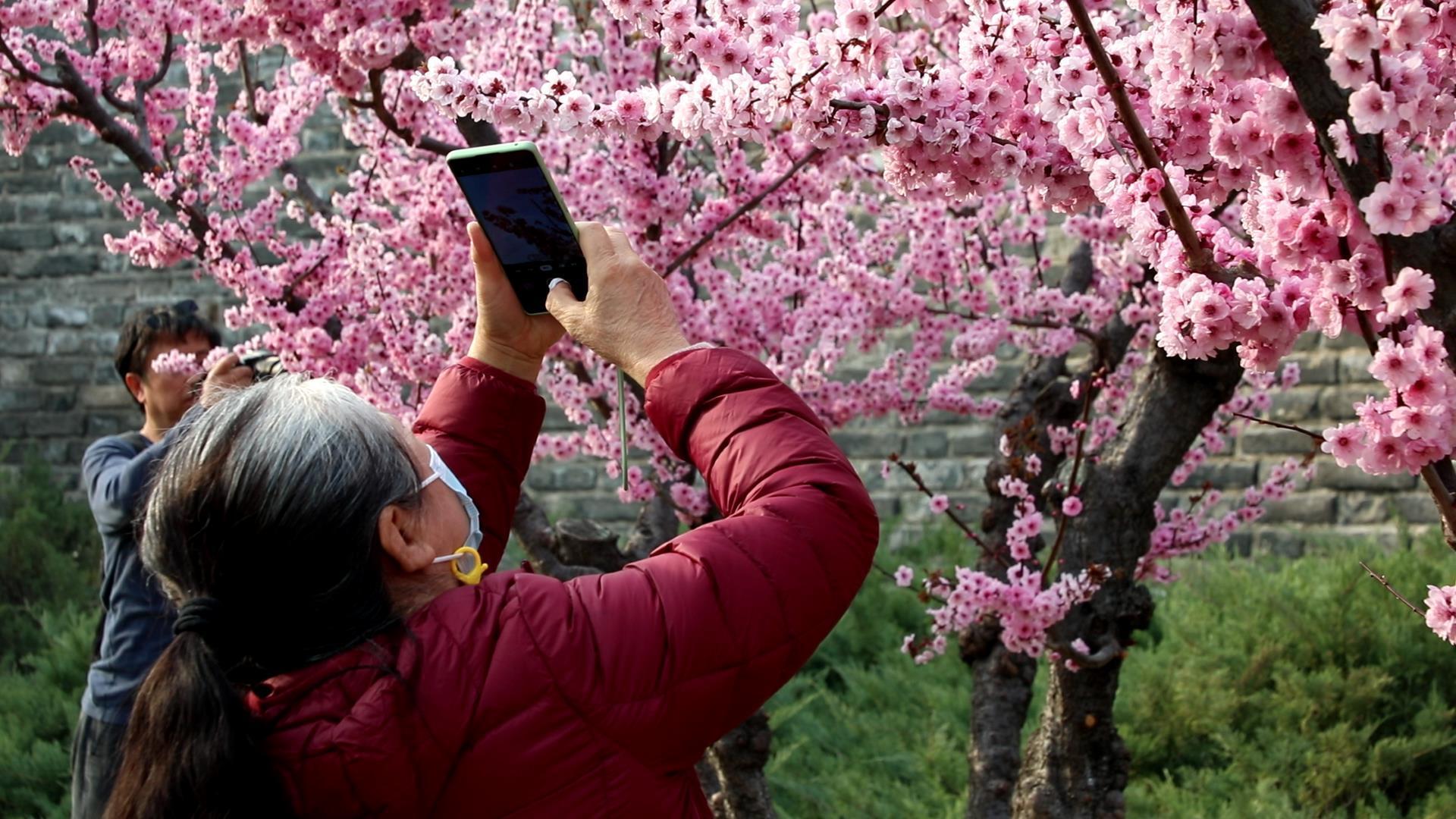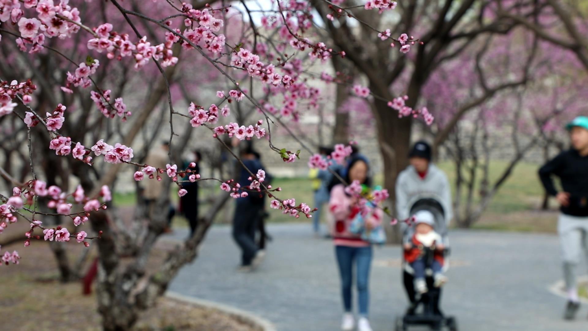 近日,北京明城牆遺址公園進入賞梅期,大批市民遊客前來賞花拍照,感受春天的氣息,領略古都的魅力。
