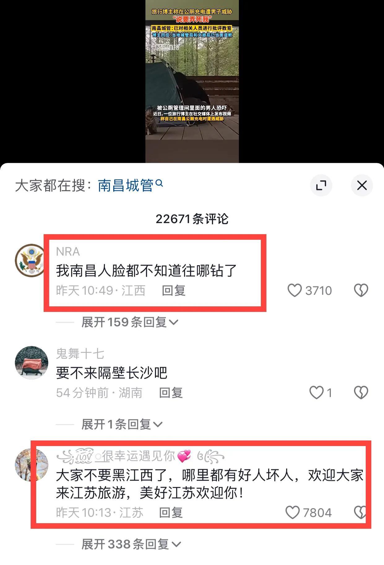 江西南昌遊客公廁充電,遭遇本地男子威脅:城管部門和文旅局道歉
