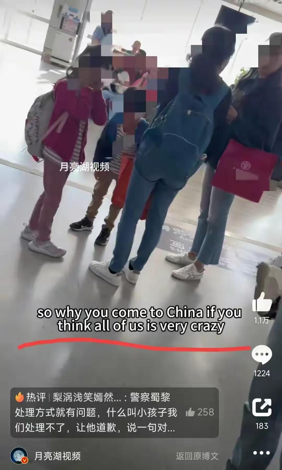 當機場民警來到現場進行調解,女子知道自己闖禍啦,女子立馬找藉口,說不願意去警察局調解,說女遊客驚嚇到她孩子啦,孩子母親跟孩子奶奶立馬說一萬個對不起,求女遊客放過孩子,女遊客說我沒有針對孩子,也沒有指責孩子,是孩子媽媽教育孩子的態度不對,還陰陽怪氣說,下次上廁所記得關好門,(女遊客聲明啦,上廁所已經關門了,因爲那個門壞的,男孩子一推就進去了)難道孩子母親在上廁所不應該叮囑男孩不要在廁所偷窺嗎?反之這個孩子母親對教育孩子沒有家教,錯的不是孩子,是孩子媽有錯。