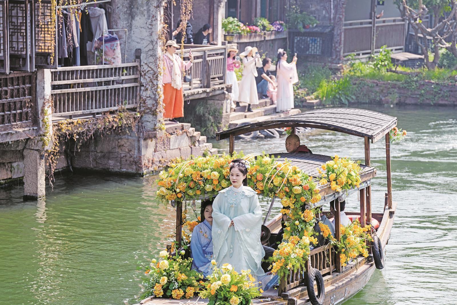 以“好好生活,好事成雙,快樂加倍”爲主題的“烏鎮好好生活節”第二季日前在浙江烏鎮景區啓幕,活動將持續至5月31日。清明假期,烏鎮景區推出戲劇演繹、民間雜耍、風味春宴等活動,圖爲花船巡遊。 烏鎮景區 供圖