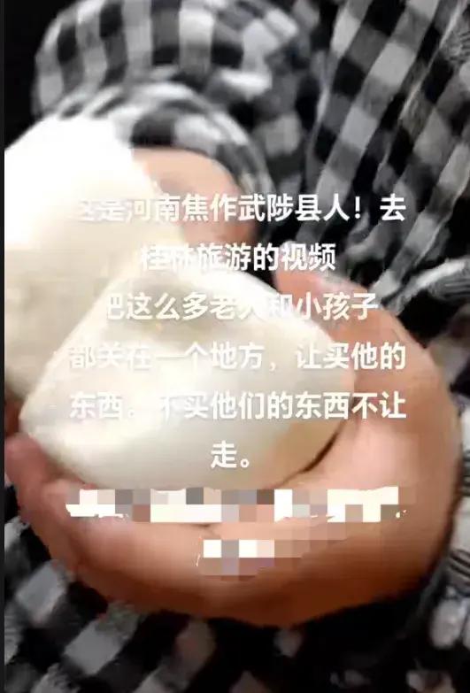 4月9日,有網友發佈視頻稱,在桂林旅遊,不買東西就不讓走,只發白饅頭喫。此事引發關注。