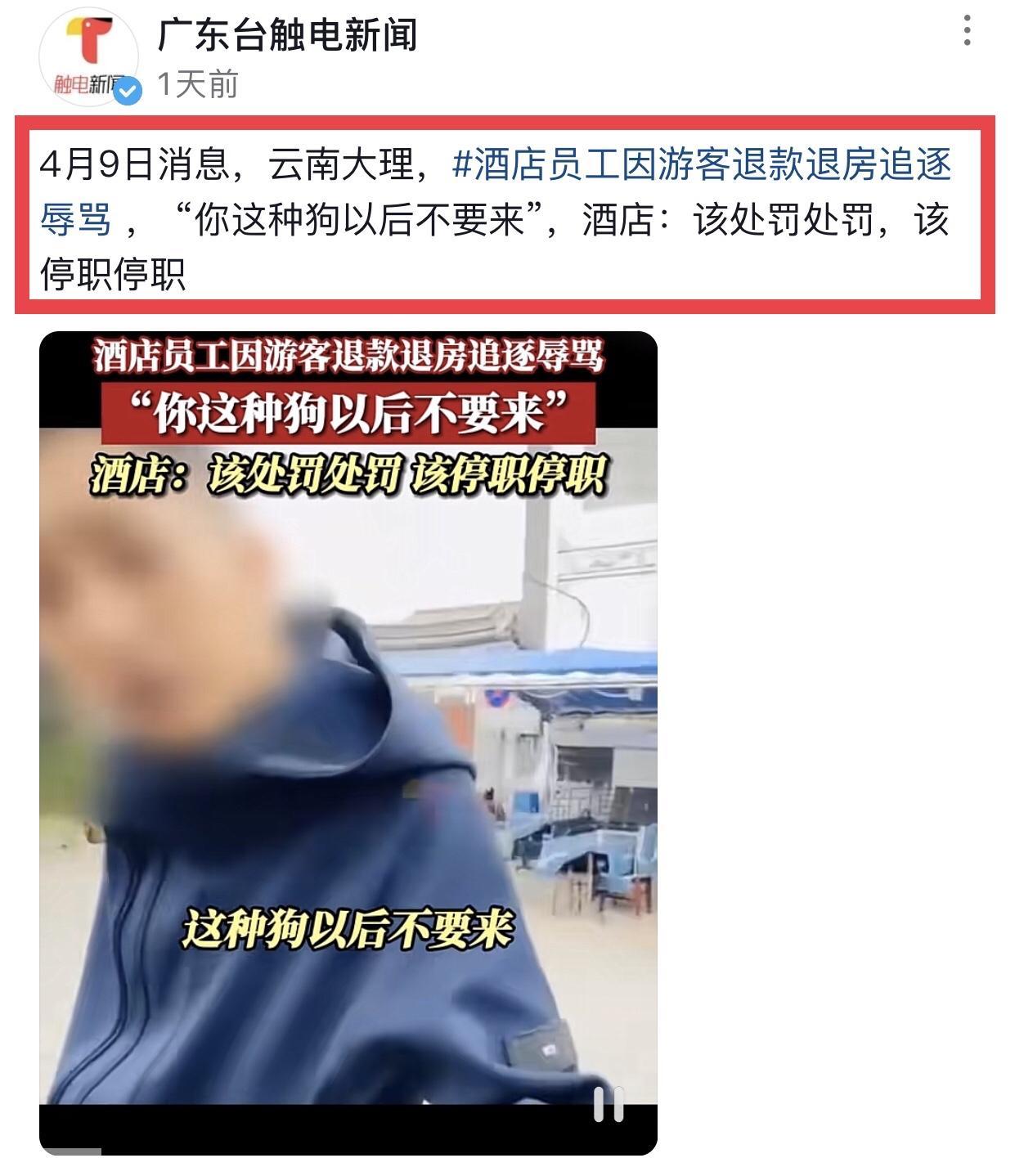 想起春節前大理髮生一個攤販阿姨罵遊客是窮鬼,這又來了罵遊客是窮鬼酒店員工,屢屢出事,那就不單是個人問題,而是地方文旅管理有問題,出事批評教育一下,違法成本太低,下次還會有人再犯這樣錯,這樣日積月累就會對這個地方旅遊形象雪上加霜,就好比雲南黑導遊一樣帽子好戴不好摘。