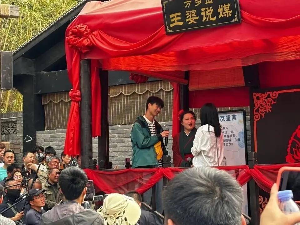 王婆說媒爆紅一個月,每天說媒活動分兩場,上午10點30一場,下午三點半一場,每場活動被擠得人山人海,上臺男女都主動舉手,氛圍感十足,氣氛爆棚,也有虛張聲勢搞氣氛的博主,筆者朋友圈三月份就去了幾個好友,他們也不是爲了去相親,就是去看熱鬧的,就喜歡王婆魅力。