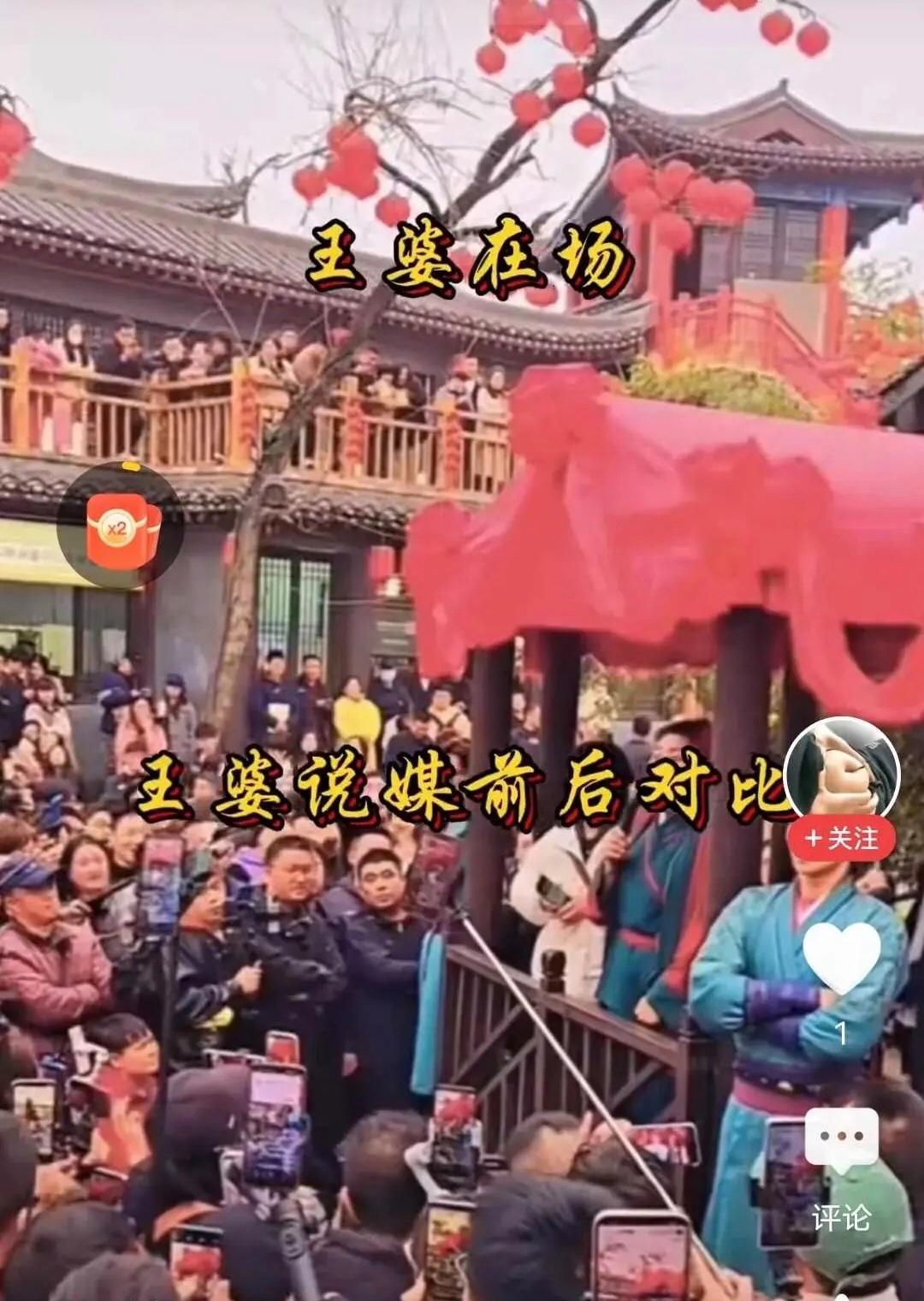 因此王婆個人社交賬號3月份僅半個月就漲粉600多萬,人紅是非多,3月份天天各大平臺刷到短視頻就是王婆說媒,然而根據媒體報道和一些微友去現場實地感受,就是王婆說媒現場,看熱鬧的,來蹭流量的主播佔多數,前面把路堵死了,真正相親的遊客上不去。