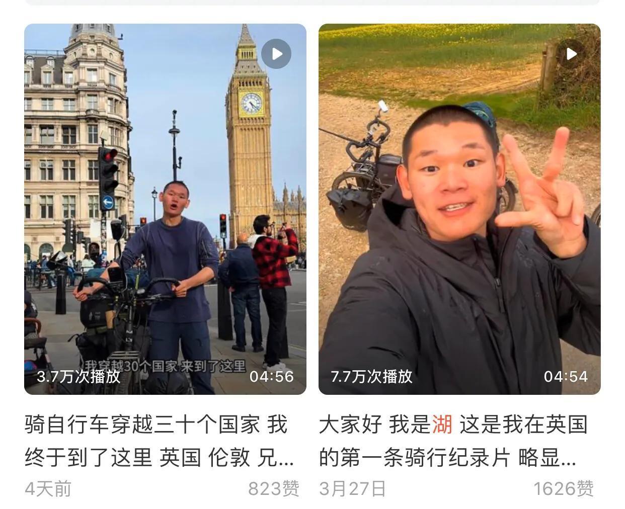 7、湖遠行,東北人,2018年以前他騎行國內,2018年開始騎行環遊世界,目前在歐洲,騎行了幾十個國家了,湖遠行在任何平臺的作品播放很高,在抖音有2000多萬粉絲,快手有五六百萬粉絲,小紅書,百度、視頻號、b站全網至少一共有三四千萬粉絲。