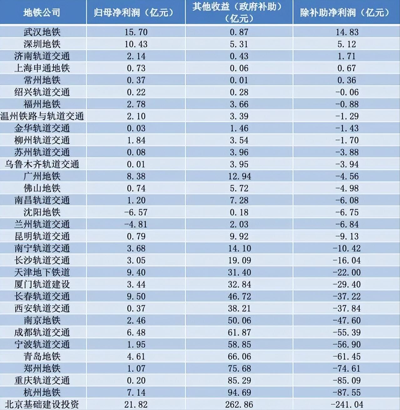 全國城市的地鐵,按照現在的經營業績,沒有幾家能做的下去,因爲入不敷出,虧損少的在幾個億,多的除了北京,還有杭州、重慶、鄭州等地,虧損都在七八十個億,而之所以能繼續運營,主要靠地方財政的大量補貼,最誇張的是重慶,地鐵全年利潤只有區區2千萬,而財政補貼高達85個億,鄭州利潤1個億,補貼75個億,財政補助最少的是常州,僅補貼一百萬。