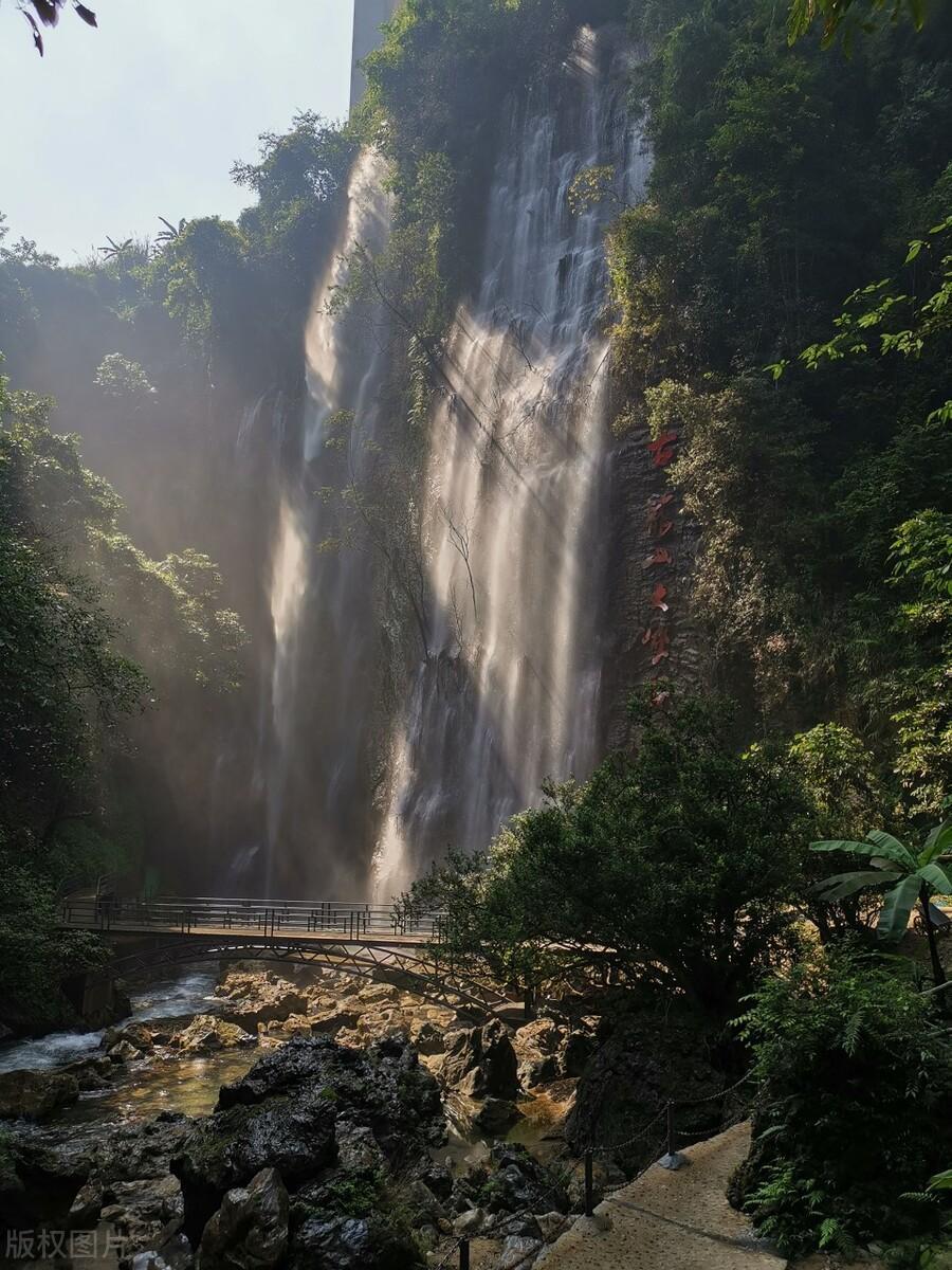 它是亞洲單級落差最高的瀑布,落差近188.6米的巨瀑從山巔衝下的剎那,氣勢恢宏,頗爲壯觀。