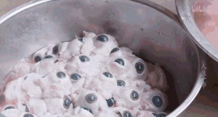 “心急你可喫不了熱眼睛,眼球裏的湯汁容易燙嘴。如果你跟它對視十分鐘,那入口的感覺就會剛剛好。豬眼睛唯一的喫法就是整顆放入口中,一口咬下,黑色的眼漿爆射口腔。”