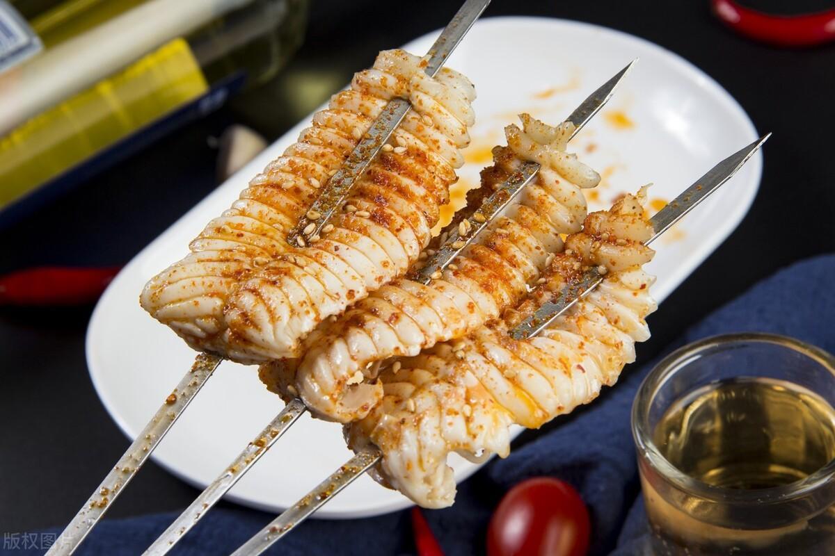烤天梯的要義在於小火炙烤及反覆刷油,但對時間的把控也同樣重要,時間過長它就會橡膠一樣根本嚼不動。剛烤好的天梯,口感軟彈,脆而有味。