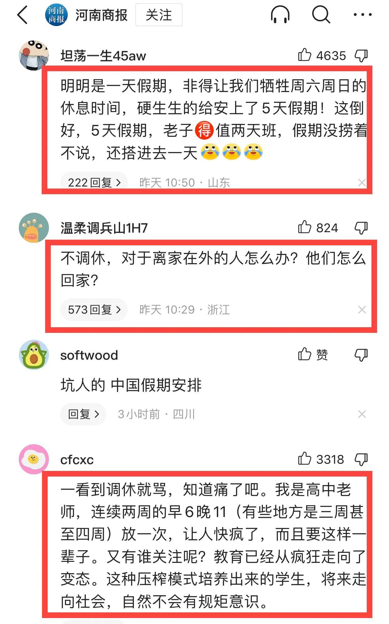 網友也呼籲節假日的放假是真正放假,不要調休,寧願少放假也不要調休補班。