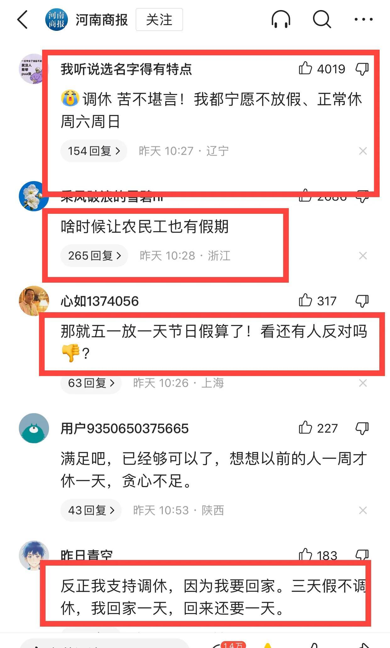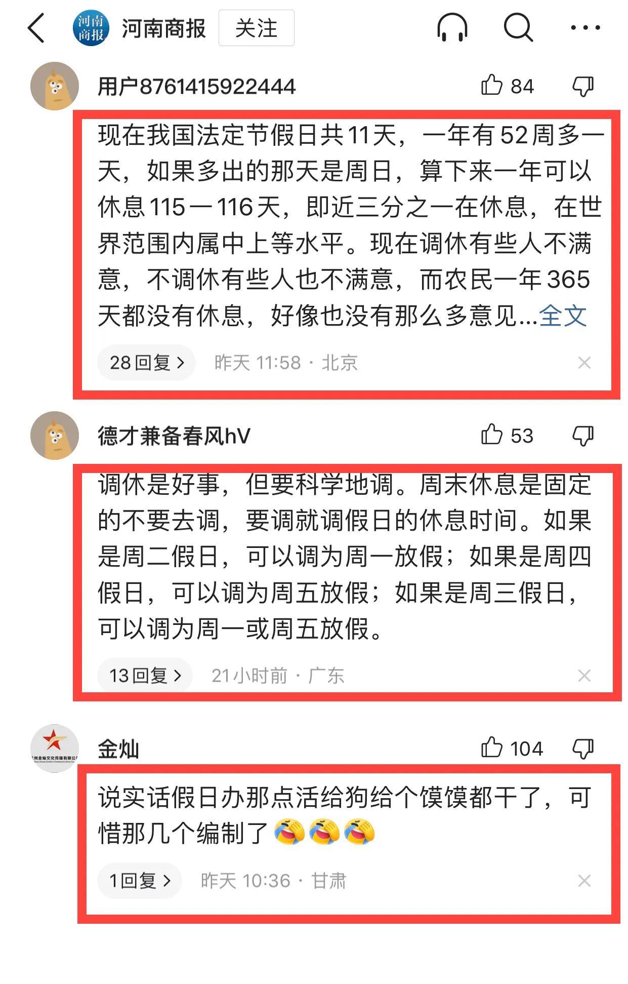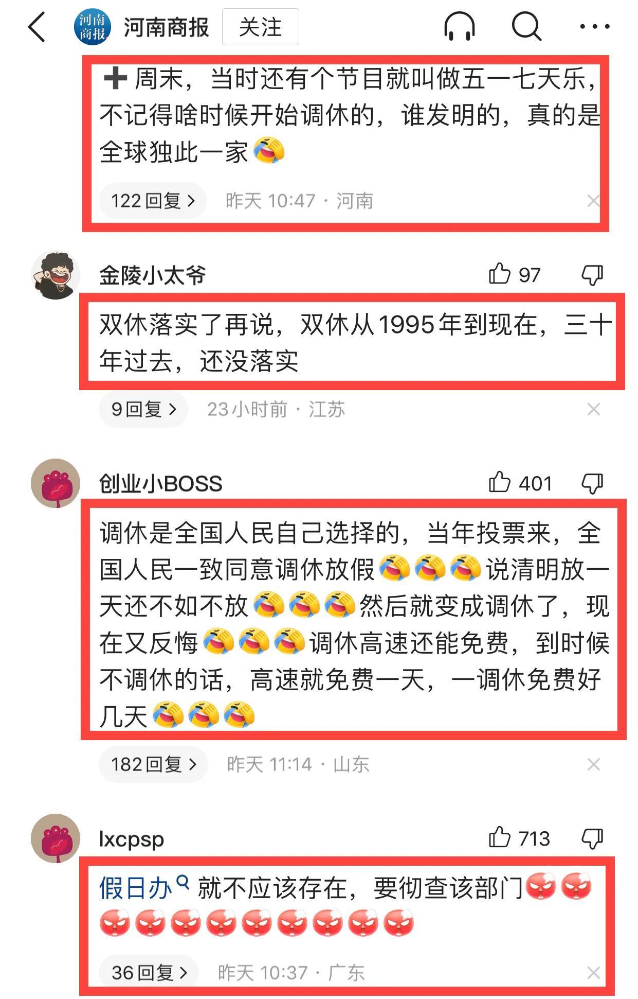 網友也呼籲節假日的放假是真正放假,不要調休,寧願少放假也不要調休補班。
