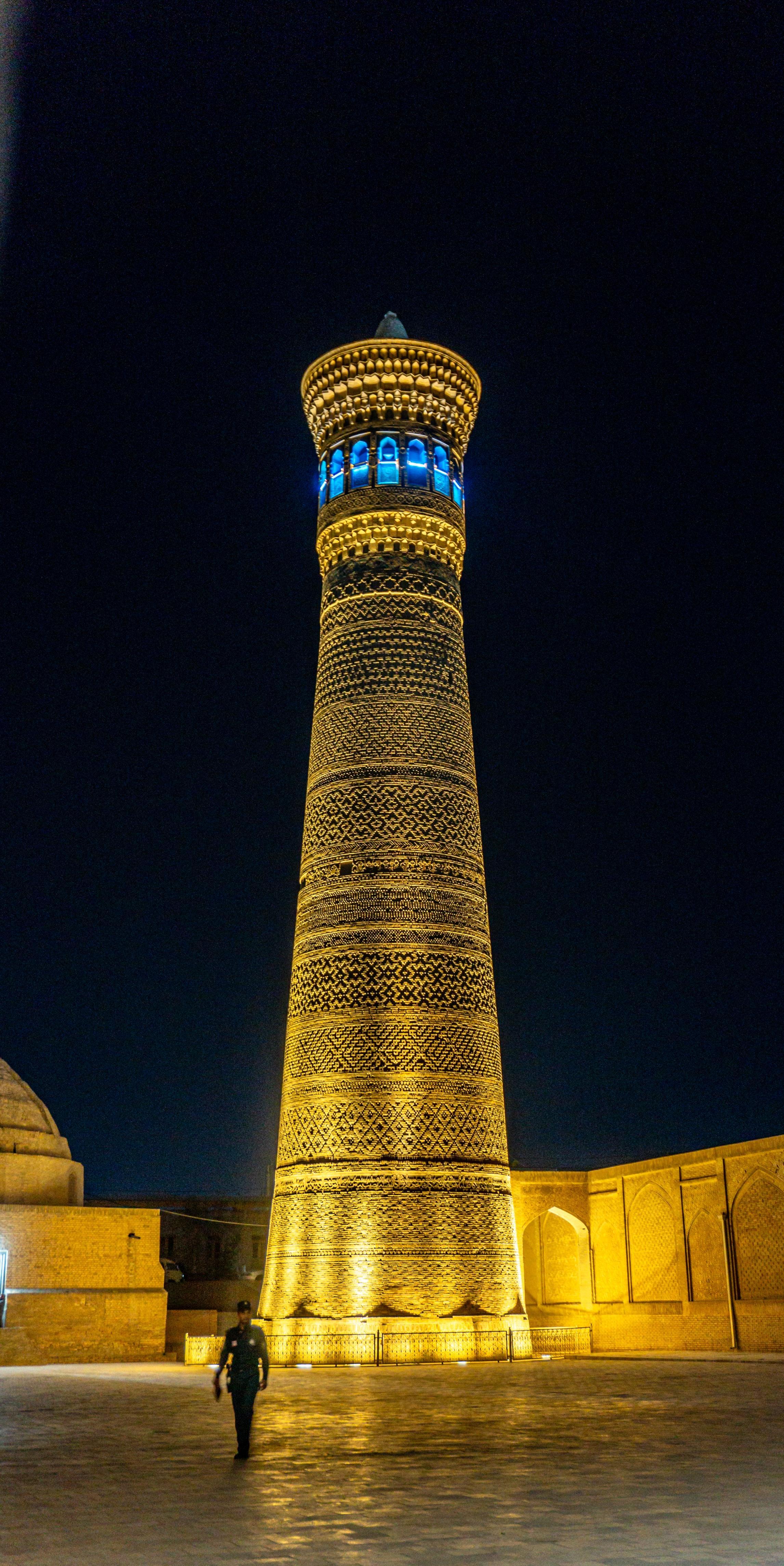 地標喀龍宣禮塔、喀龍清真寺和米里阿拉伯神學院亦然,不過夜幕初上時,則是另一番模樣。