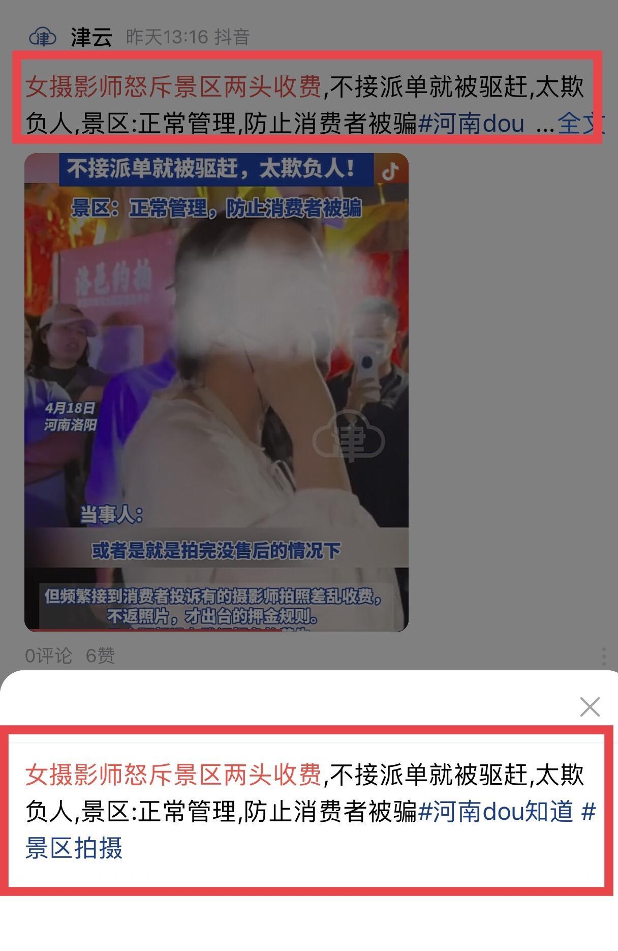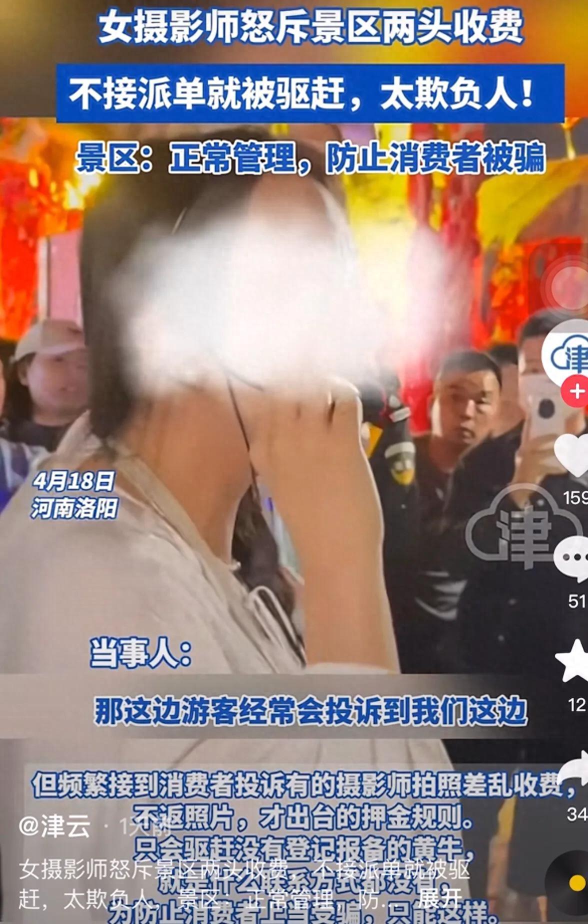 河南洛陽,女攝影師吐槽景區兩頭收費:交2000元押金不接單被趕走