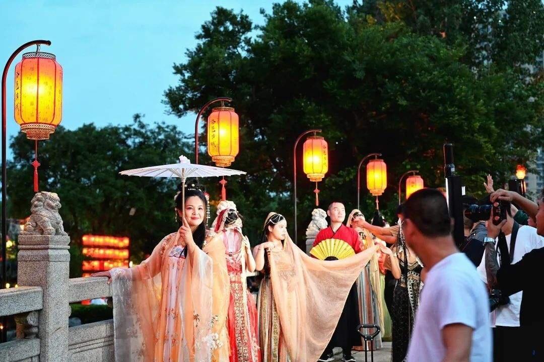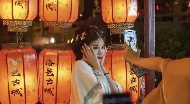 洛邑古城成爲洛陽漢服旅拍的一張名片,這兩年漢服文化興起,全國各地年輕男女來到洛邑古城都會拍幾套流水線式漢服旅拍,當你走進洛邑古城看到到處是漢服小姐姐,每當夜幕降臨,漢服小姐姐們在燈紅酒綠映襯下,個個風姿綽約,亭亭玉立,走在古城或明或暗的石板路上,飄飄然若仙,就不由得讓人想起哪句古詩:“衆裏尋她千百度,驀然回首,那人卻在燈火闌珊處。”