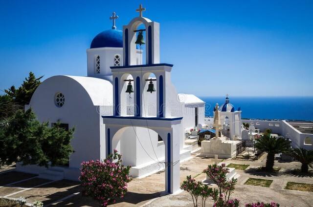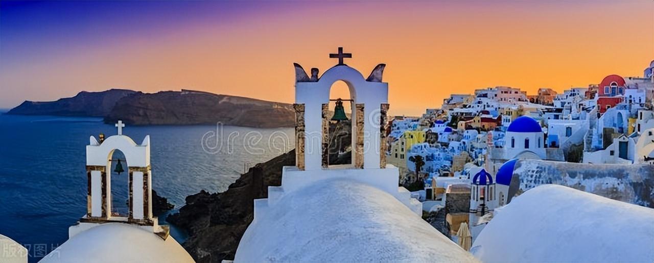 這裏有全世界最美麗的日落,每天晚上7點左右的黃昏時節,這座藍頂教堂附近就會擠滿了來這裏觀賞夕陽落入愛琴海的壯美情景。