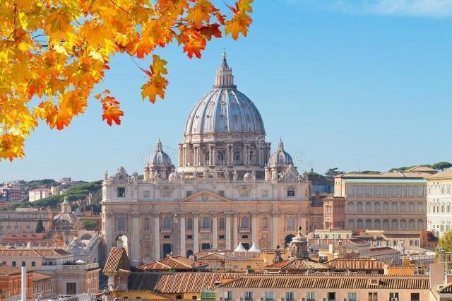 聖彼得大教堂又稱梵蒂岡大殿,建於1506年至1626年間,是意大利文藝復興時期偉大的雕塑家和建築師米開朗基羅和拉斐爾的設計手筆,教堂空間巨大,是世界上最大的教堂,可容納超過六萬人同時祈禱,被視爲是天主教會最神聖的地方。