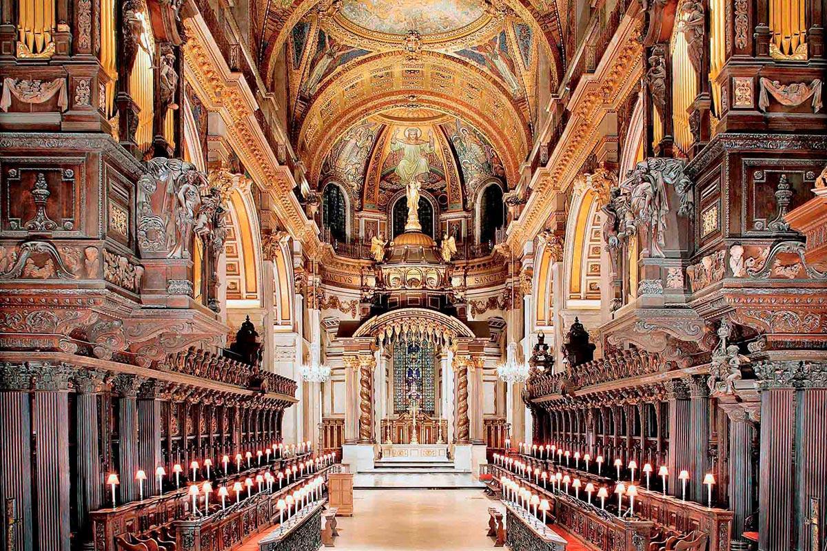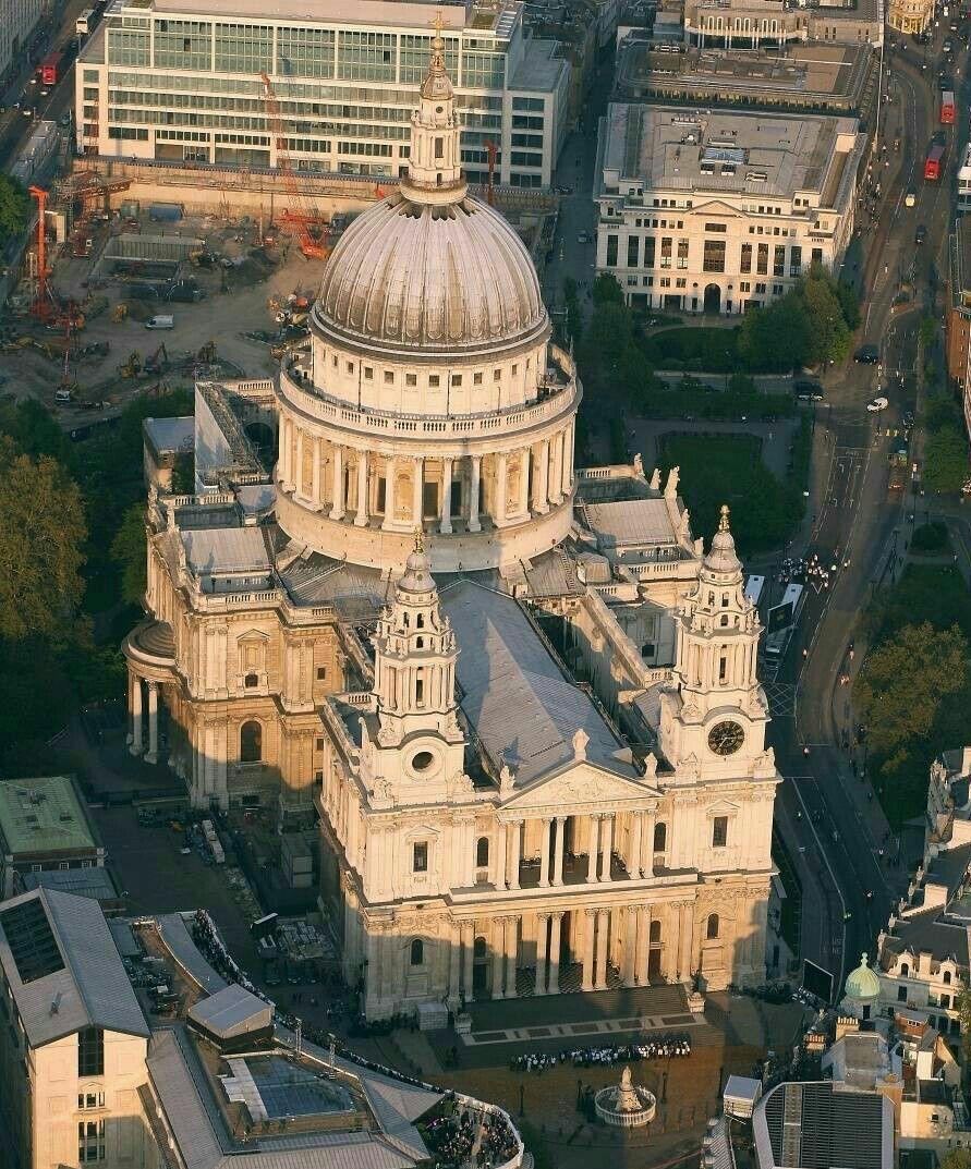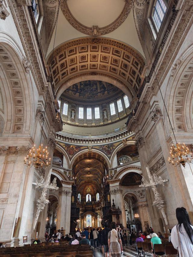 聖保羅大教堂建於17世紀末,是世界著名的宗教聖地,排名世界第五、英國第二大教堂,建築爲華麗的巴洛克風格,有一百多米的高巨大穹頂,外觀設計宏偉,內部靜謐安詳,塔頂是眺望倫敦市區的絕佳地點,但要爬近500個臺階。