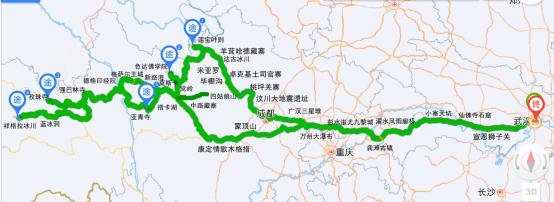 3.路線概覽:武漢—奉節小寨天坑(560公里約7:30)—萬州大瀑布(220公里約2:30)—廣漢三星堆遺址(510公里約6小時)——桃坪羌寨(160公里約2小時)—畢棚溝(60公里約50分鐘)—米亞羅(50公里約一小時)—卓克基土司官寨(74公里1:10)—達古冰川(150公里約2:40)—七彩甲足—羊茸哈德藏寨(10公里約15分鐘)—奶子溝彩林(2.5公里)—蓮寶葉則(232公里4:30)—色達佛學院(355公里4:20)—格薩爾王城(170公里約3小時)—