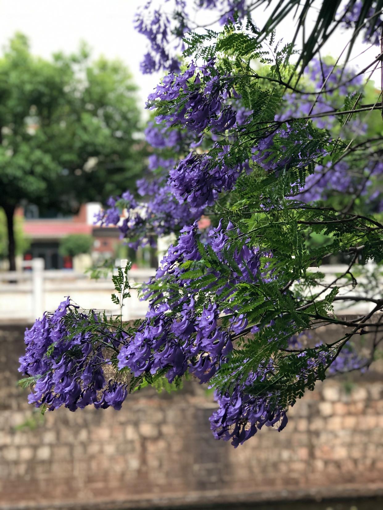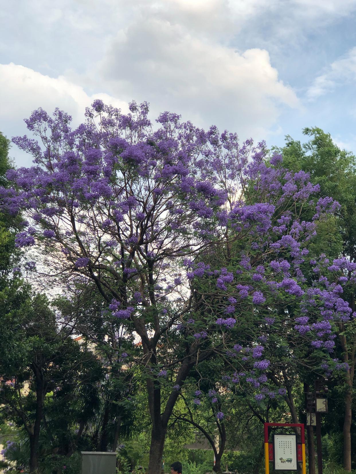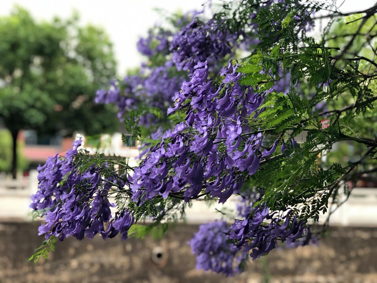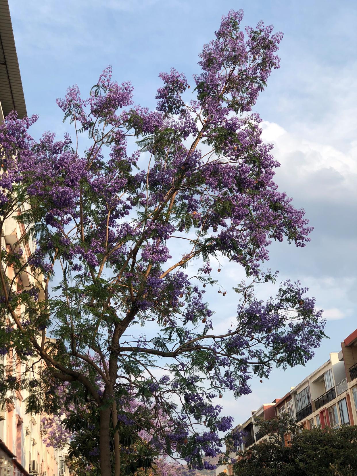 藍花楹花期比較長,前後能持續一個多月,從四月開放會一直延續到五月中旬,所以五一到雲南旅遊,必須打卡藍花楹,昆明藍花楹大道成片,面積大,但是旅遊旺季遊客太多,一眼望去人頭比花還多,如果選擇清靜,還是選擇小縣城,市級城市拍攝打卡藍花楹吧?