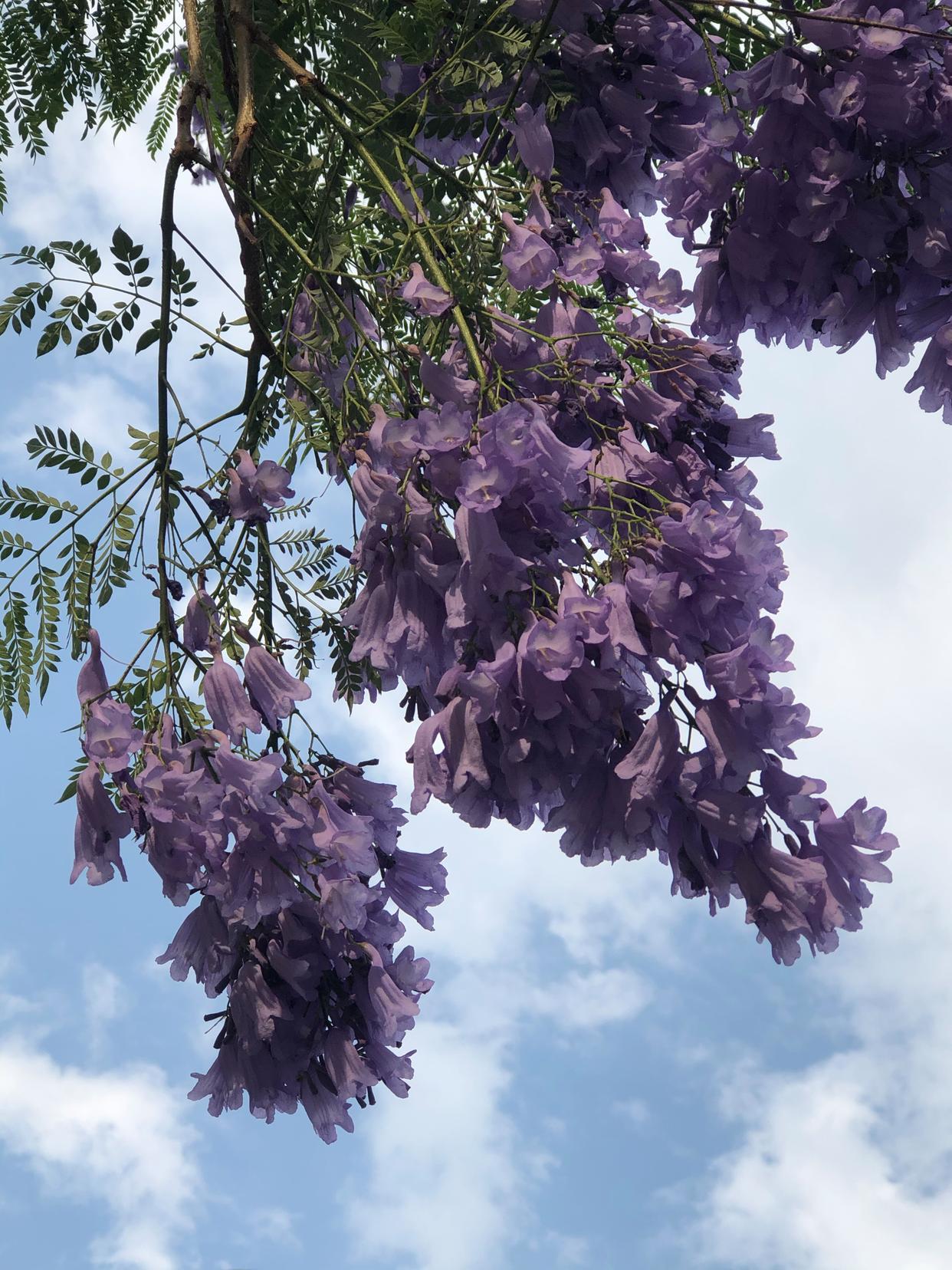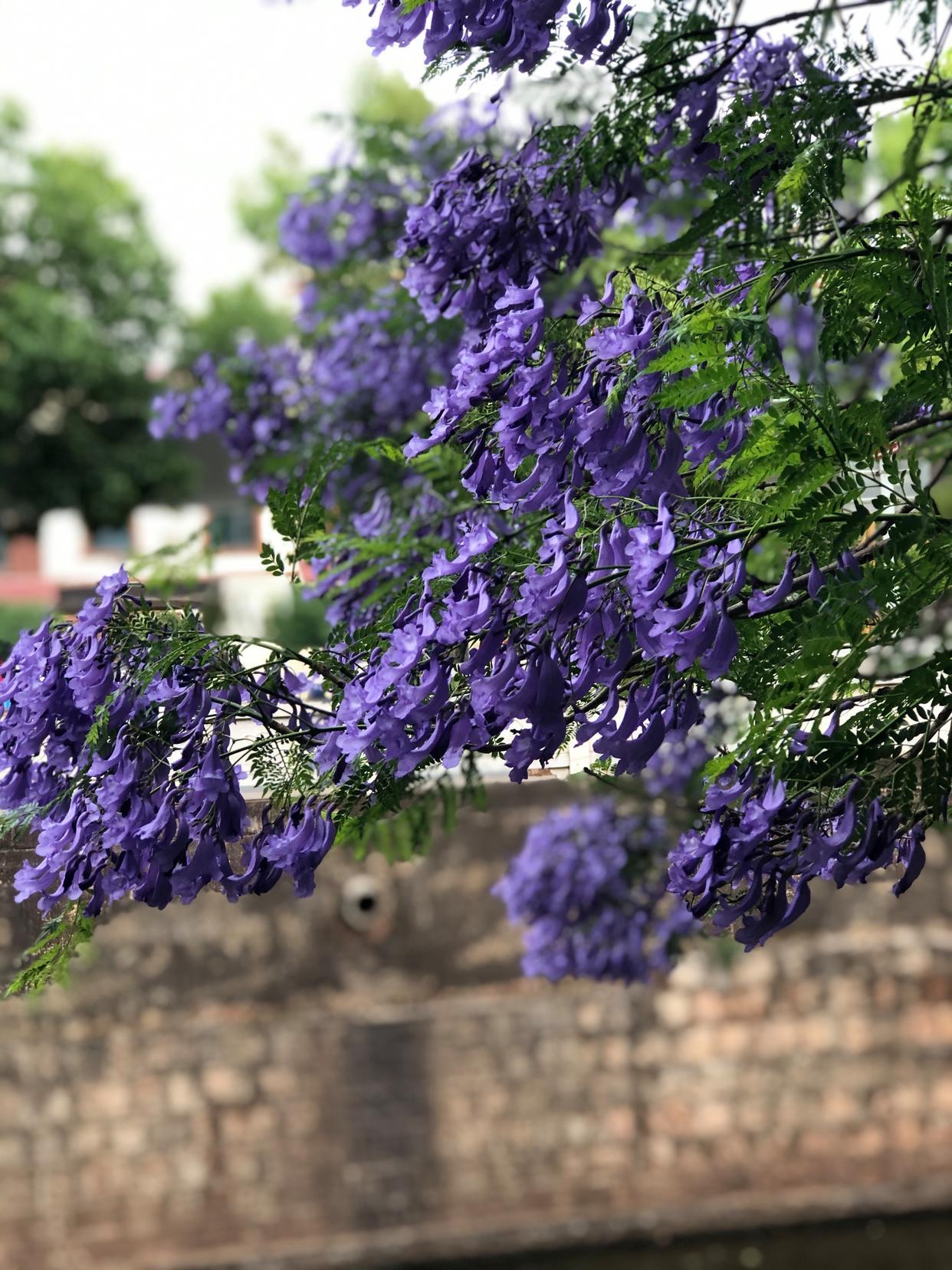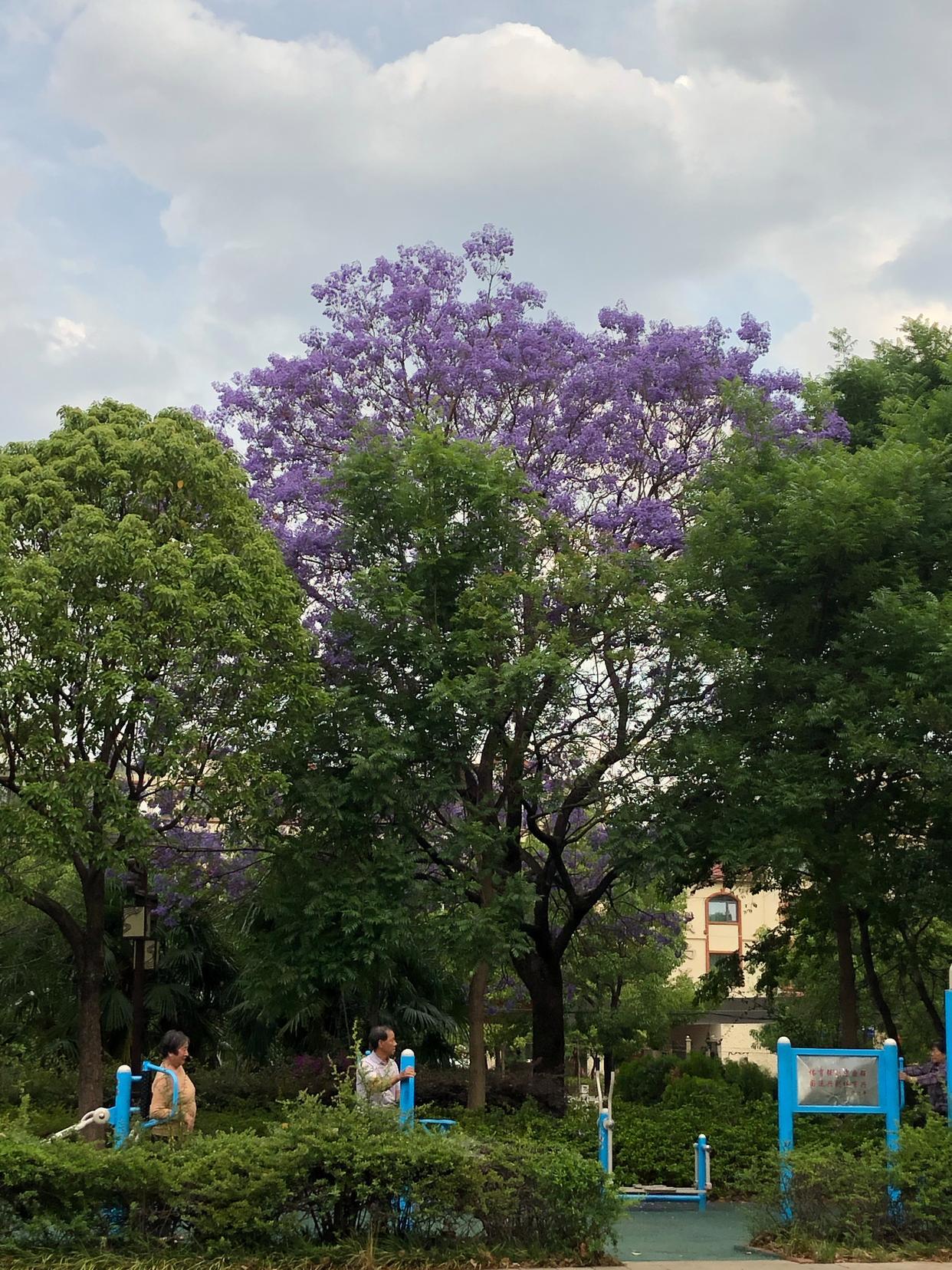 藍花楹花期比較長,前後能持續一個多月,從四月開放會一直延續到五月中旬,所以五一到雲南旅遊,必須打卡藍花楹,昆明藍花楹大道成片,面積大,但是旅遊旺季遊客太多,一眼望去人頭比花還多,如果選擇清靜,還是選擇小縣城,市級城市拍攝打卡藍花楹吧?