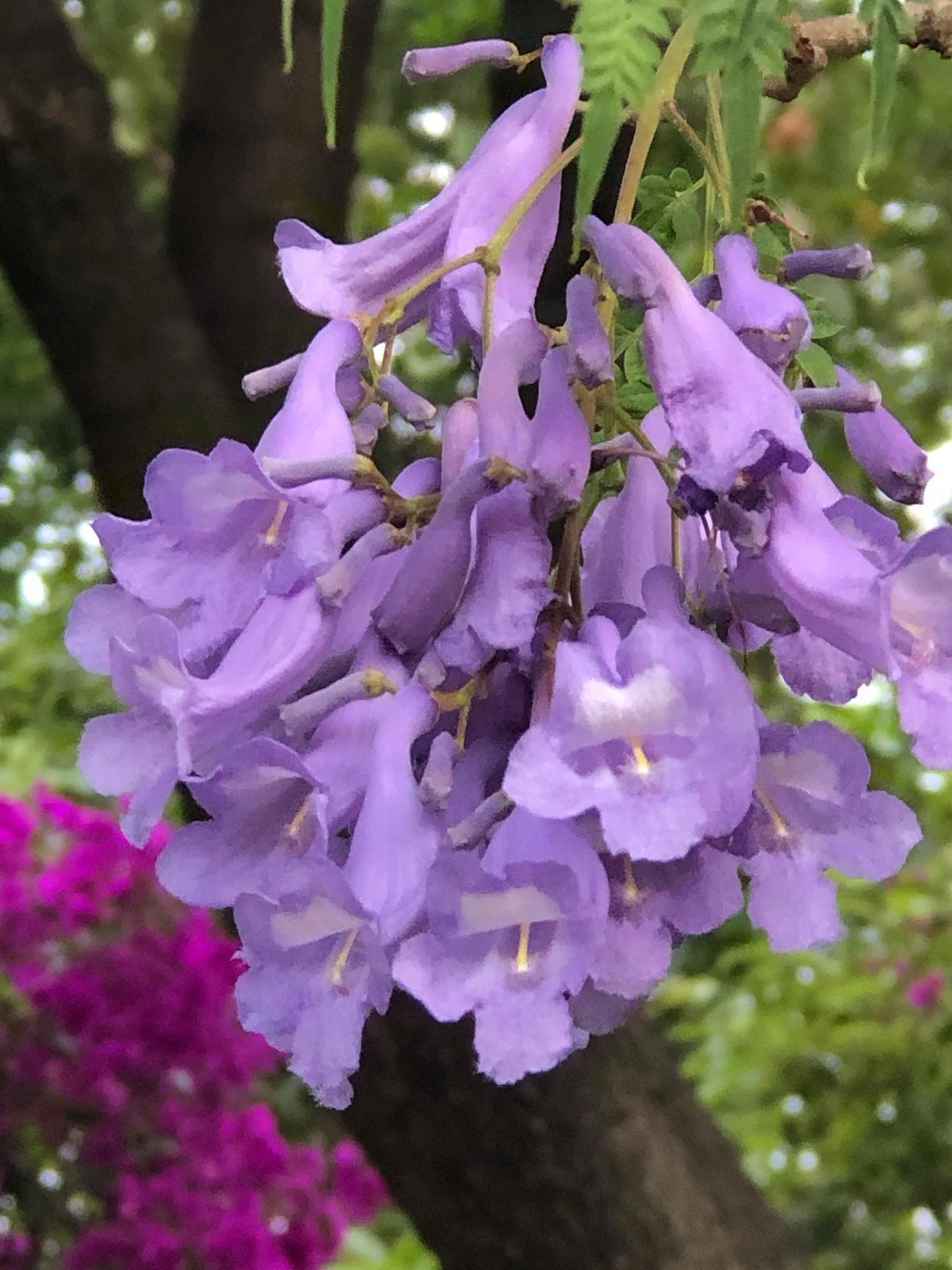 值得注意是,藍花楹一般樹木高達幾米十幾米,樹幹粗壯,有的一個人抱不到,文明出遊,不要攀爬到樹上拍照,一個是安全風險高,在就是對藍花楹起到破壞,還會把花抖落,影響美觀,拍照藍花楹最好方式,必須備好單反相機效果更好,如果沒有單反,現在手機焦距也是可以的,單相對於單反長焦還是有很大差別。