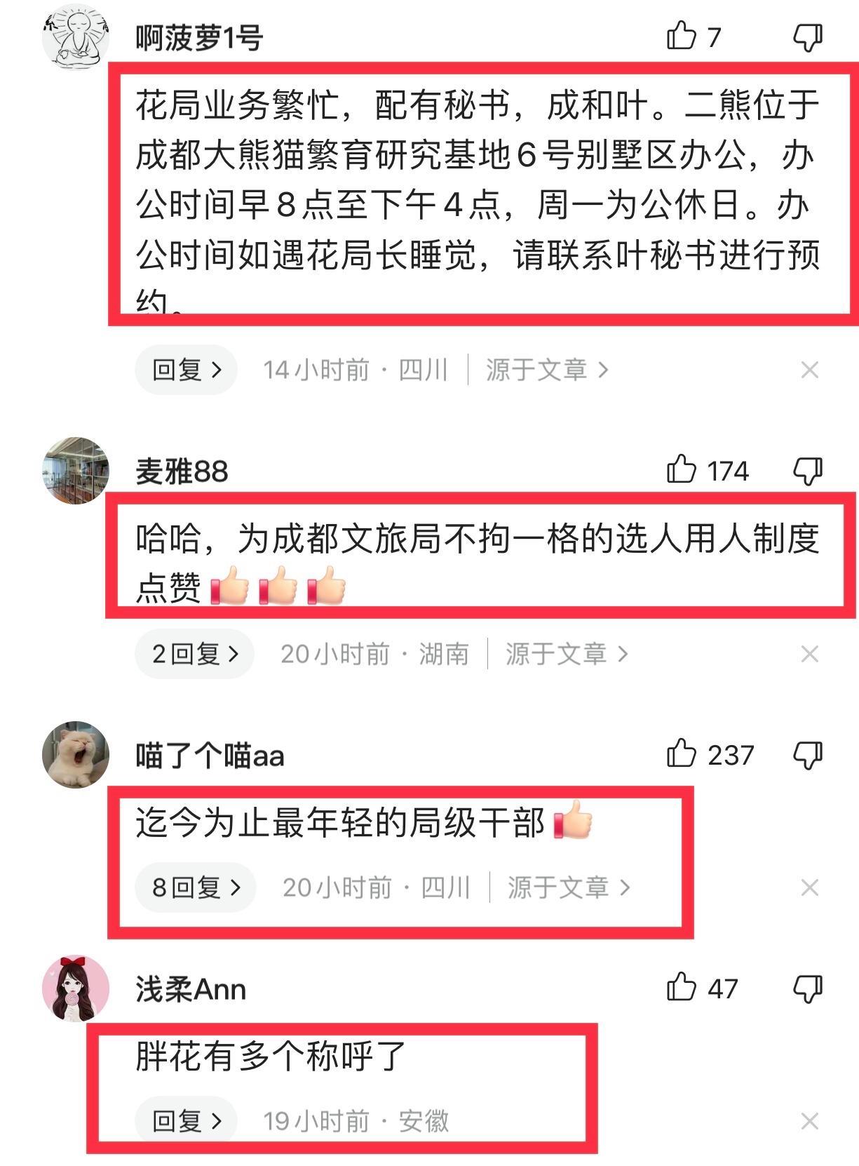 大熊貓花花一直是成都旅遊形象宣傳大使,花花擔任過成都大運會宣傳大使,春晚特邀嘉賓,如今又有新職,網友現在稱她爲花局,網友也表示成都旅遊局安排花花職位很明智,又給成都旅遊加分了,希望通過花花名氣讓世界各地,全國各地遊客都來成都旅遊。