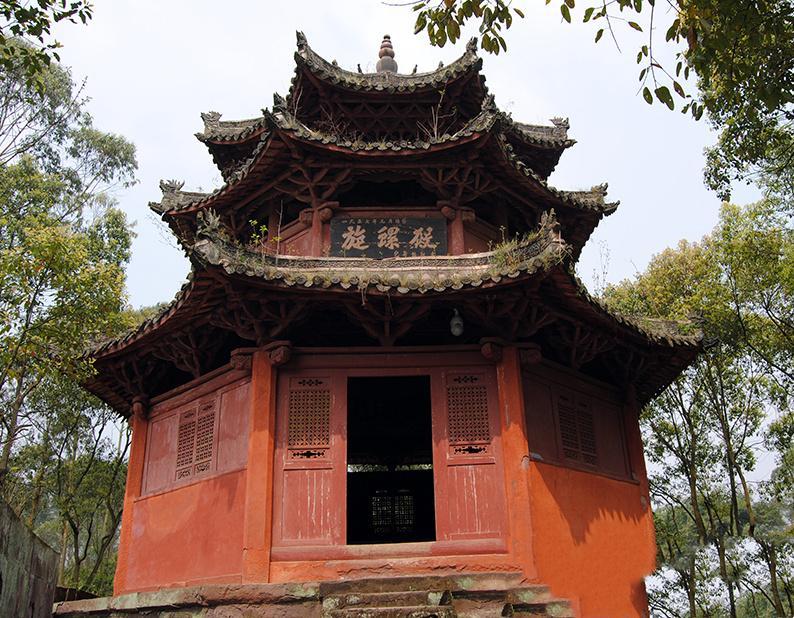 旋螺殿,建於明朝,,整座建築爲全木斗拱結構,不用一顆鐵釘,梁思成住在李莊時,讚譽它“樑柱結構之優,頗足傲於當世之作”。