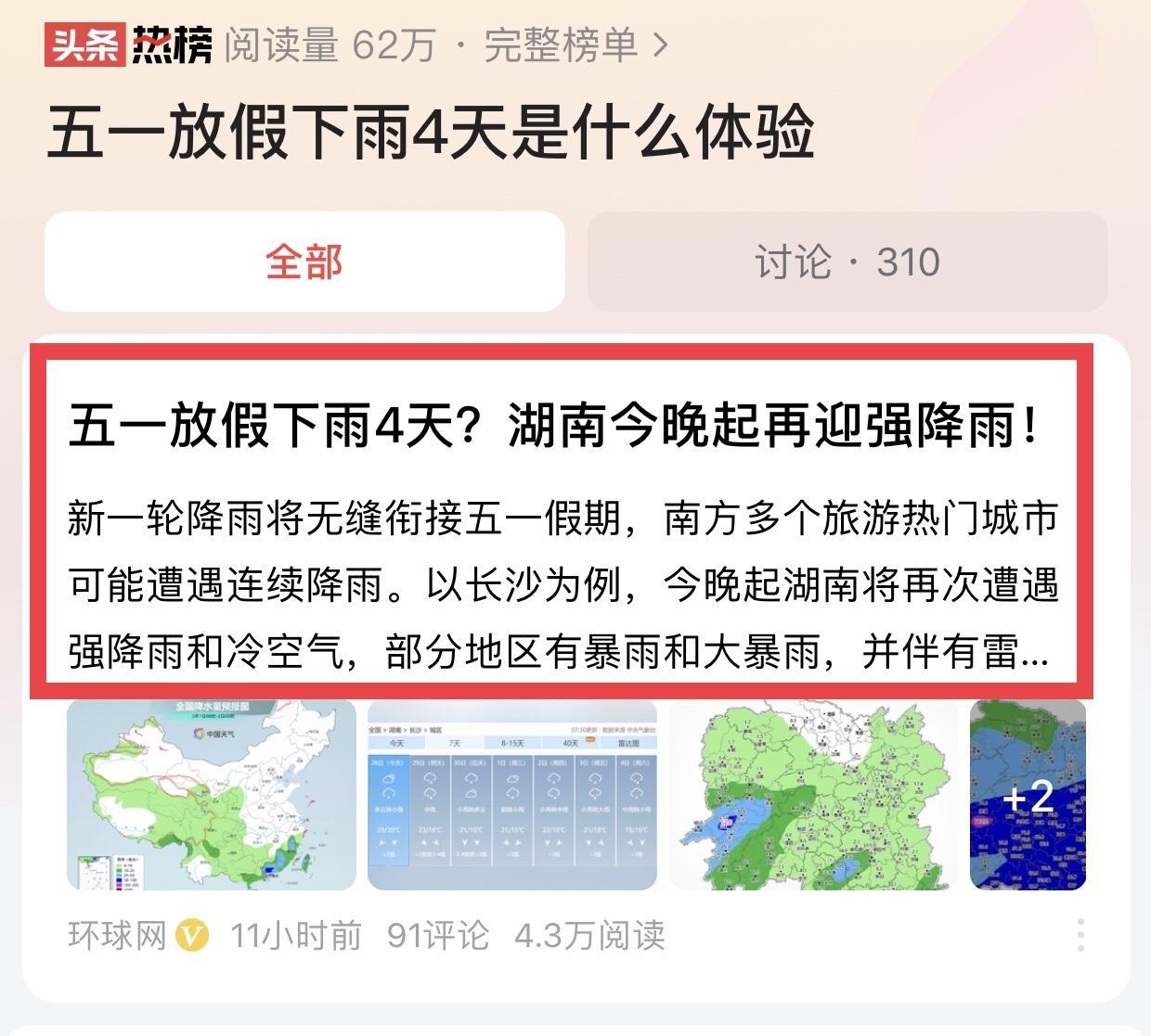 小長假來臨,今年五一小長假一共五天假期,本來對於這個調休補班大家就有意見,但是天有不測風雲,調休就算了,竟然老天爺也不幫忙,擠出來的5天假期,有四天下雨,很多網友表示真是幾個月攻略功虧一簣,不知道去哪旅遊了。