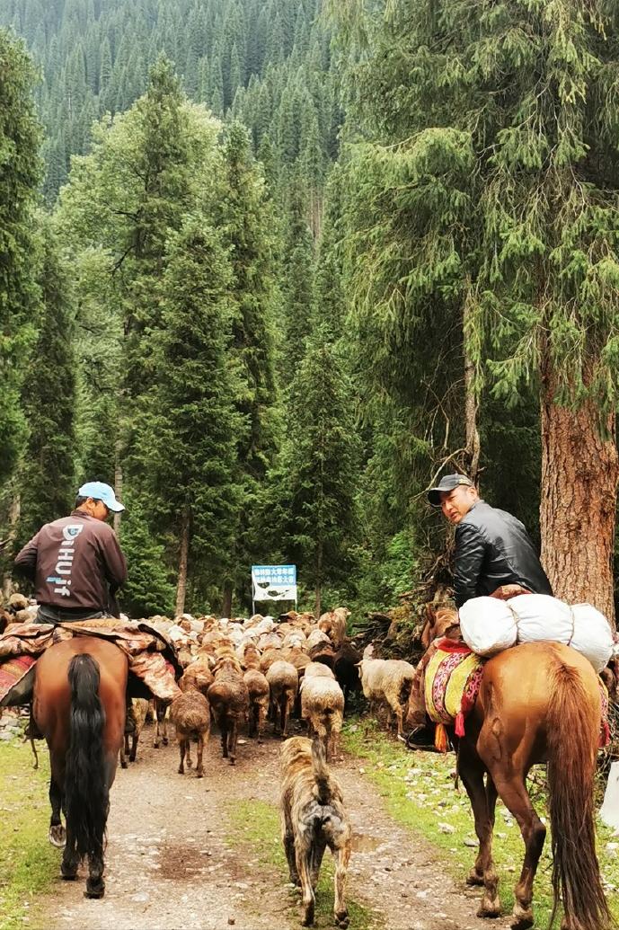 在伊犁,隨處可見絲滑如毯的遼闊草原,墨綠色的雲杉如斑紋一樣交錯分佈,山間牧馬往來、牛羊成羣,“天似穹廬,籠蓋四野”的草原風情唾手可得。