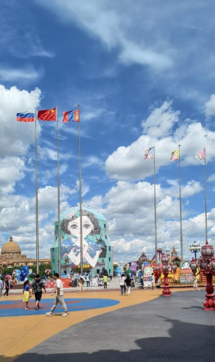 滿洲里,這個披着彩色外衣的城市,在空曠的天地間熠熠閃光,高樓上精緻的尖頂在通透的藍天下顯得格外耀眼。