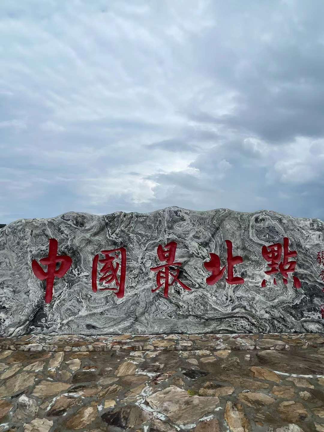 中國最北點,位於烏蘇裏卡倫淺灘上,地理座標爲東經123°15′30″,北緯53°33′42″,有塊寫着“中國最北點”的石頭,如今這裏已經被納入龍江第一灣景區內。