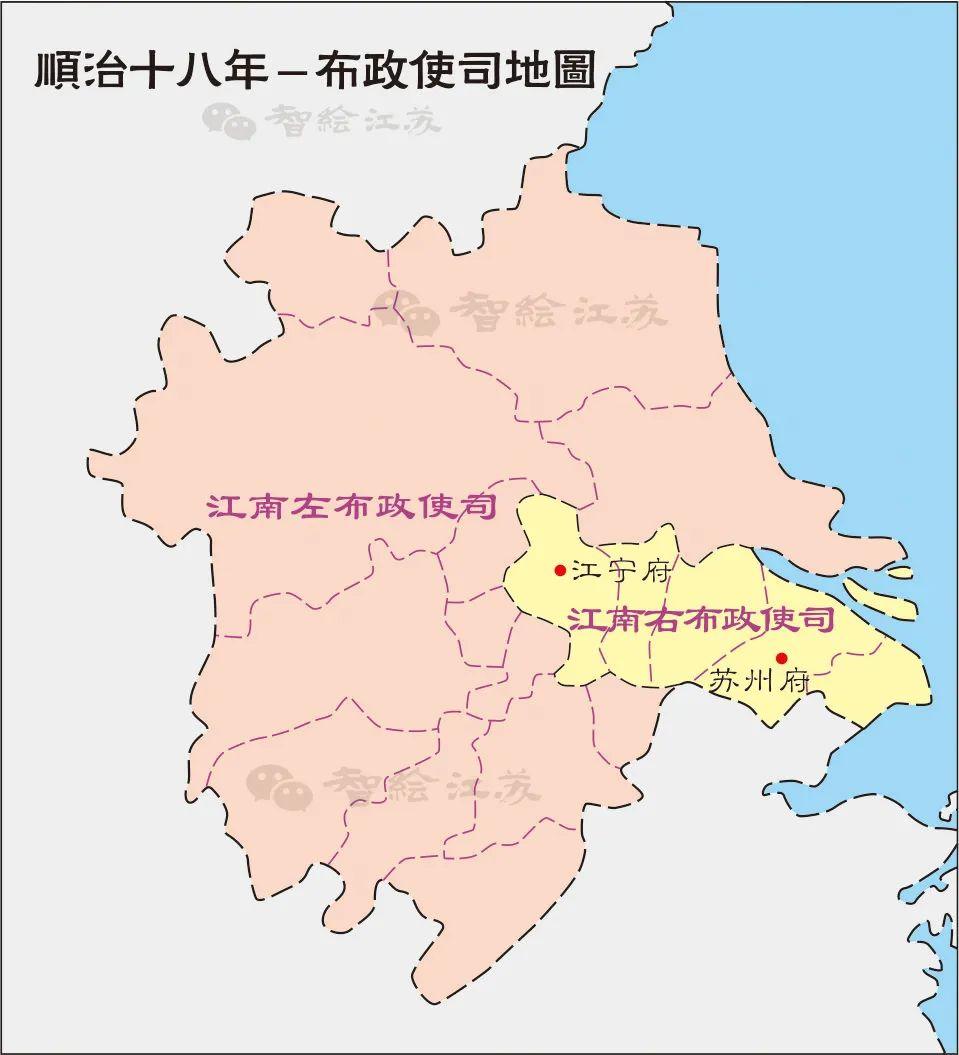 南直隸變成了江南省,設左右布政使分而治之;再然後江南省分家,江蘇、安徽出現了,左右布政使也被改稱爲江蘇布政使和安徽布政使。
