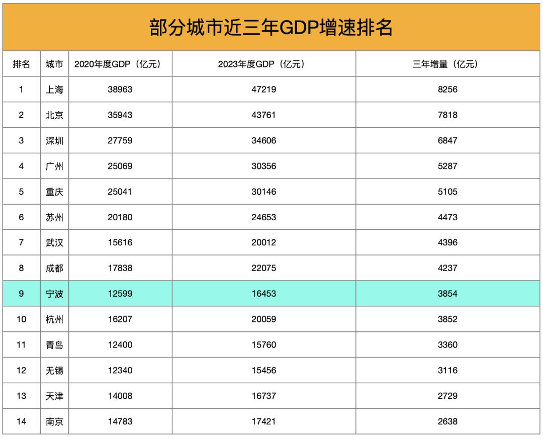 寧波是GDP“萬億俱樂部城市”中爲數不多的非直轄市、非省會城市,位列全國15座副省級城市。2023年,寧波全年GDP達到了16452.8億元,位列浙江省第2名,全國第12名。