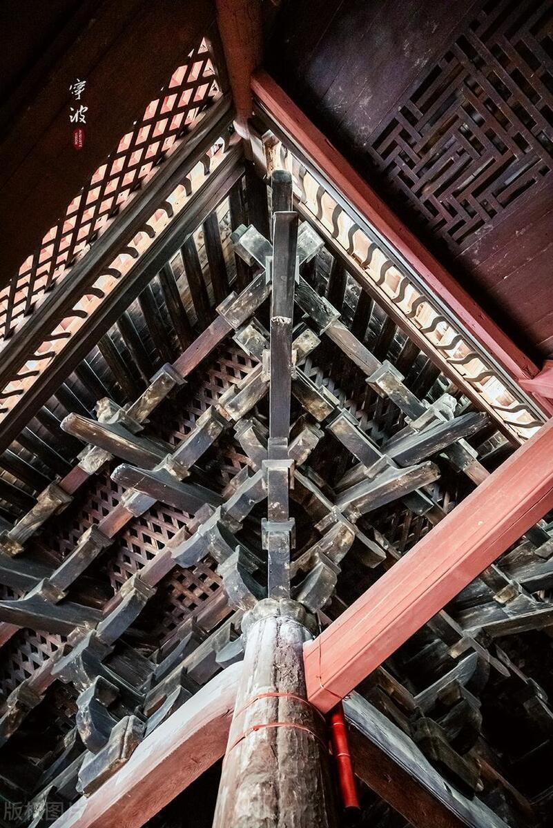 保國寺內,最值得稱道的是那座大雄寶殿,其爲北宋木結構建築,據說是江南現存最古老的木構建築。全部結構不用一釘,僅用榫卯,巧奪天工。
