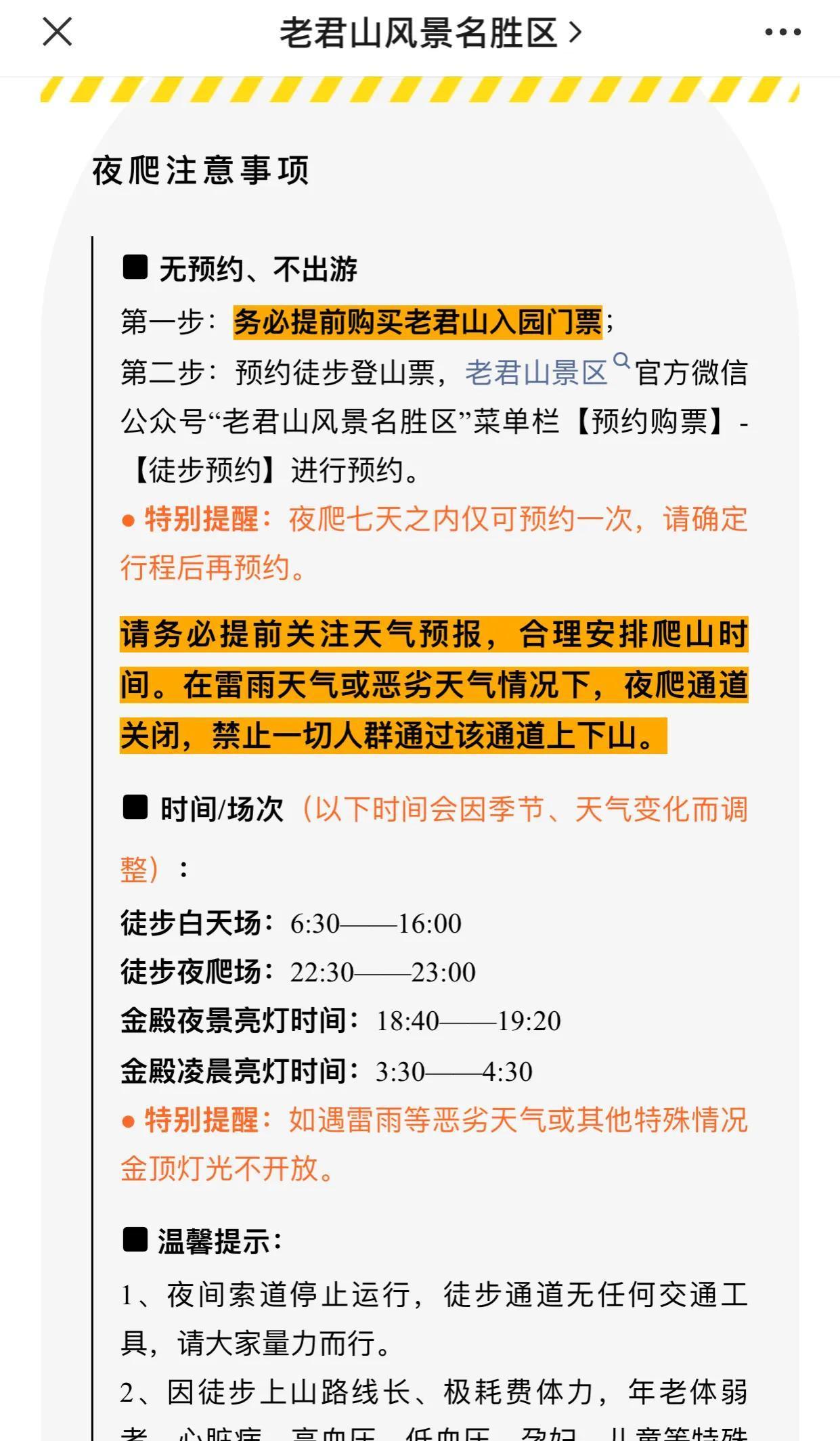 老君山如今開通了夜遊模式,遊客可以白天遊覽,如果喜歡看日出遊客也可以夜晚遊覽,提前預約好門票就可以夜爬,但是夜爬溫度較低,一定要多穿衣服保暖,夜爬晚上沒有任何沿途風景,都是爲了看老君山的日出和雲海,一般夜爬到山頂時間尚早,沒有到日出時間,都會找地方休息,山頂也有酒店什麼的。