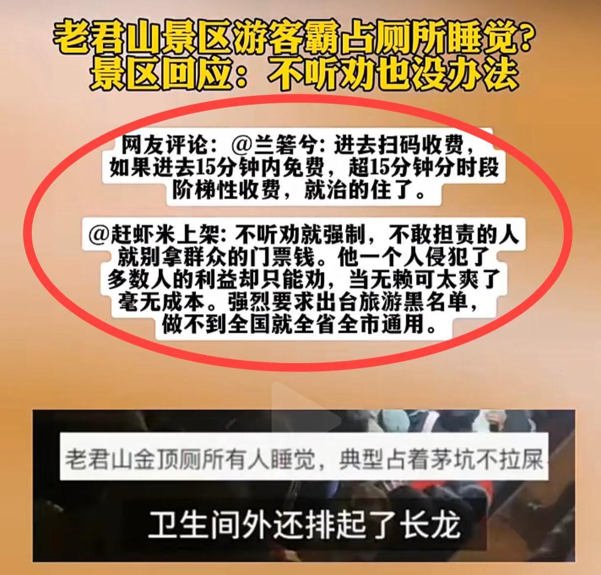 (類似在廁所睡覺景區,在安徽黃山,山東泰山都發生過)。