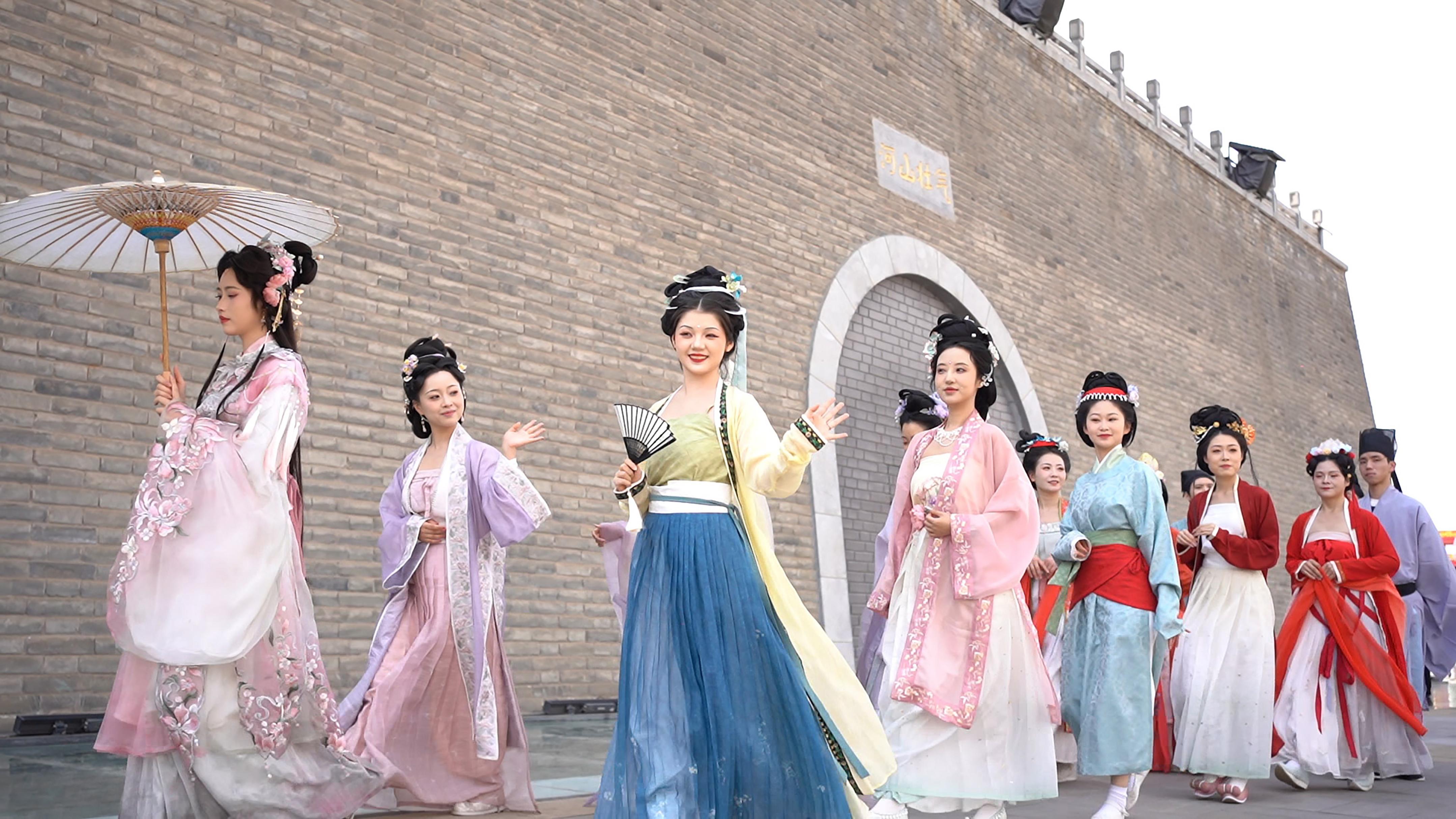 五一假期,延安市金延安景區推出金延安潮音狂歡季與第二屆文化旅遊節,涵蓋30餘項文化和旅遊活動。圖爲漢服巡遊活動現場。 任龍 攝
