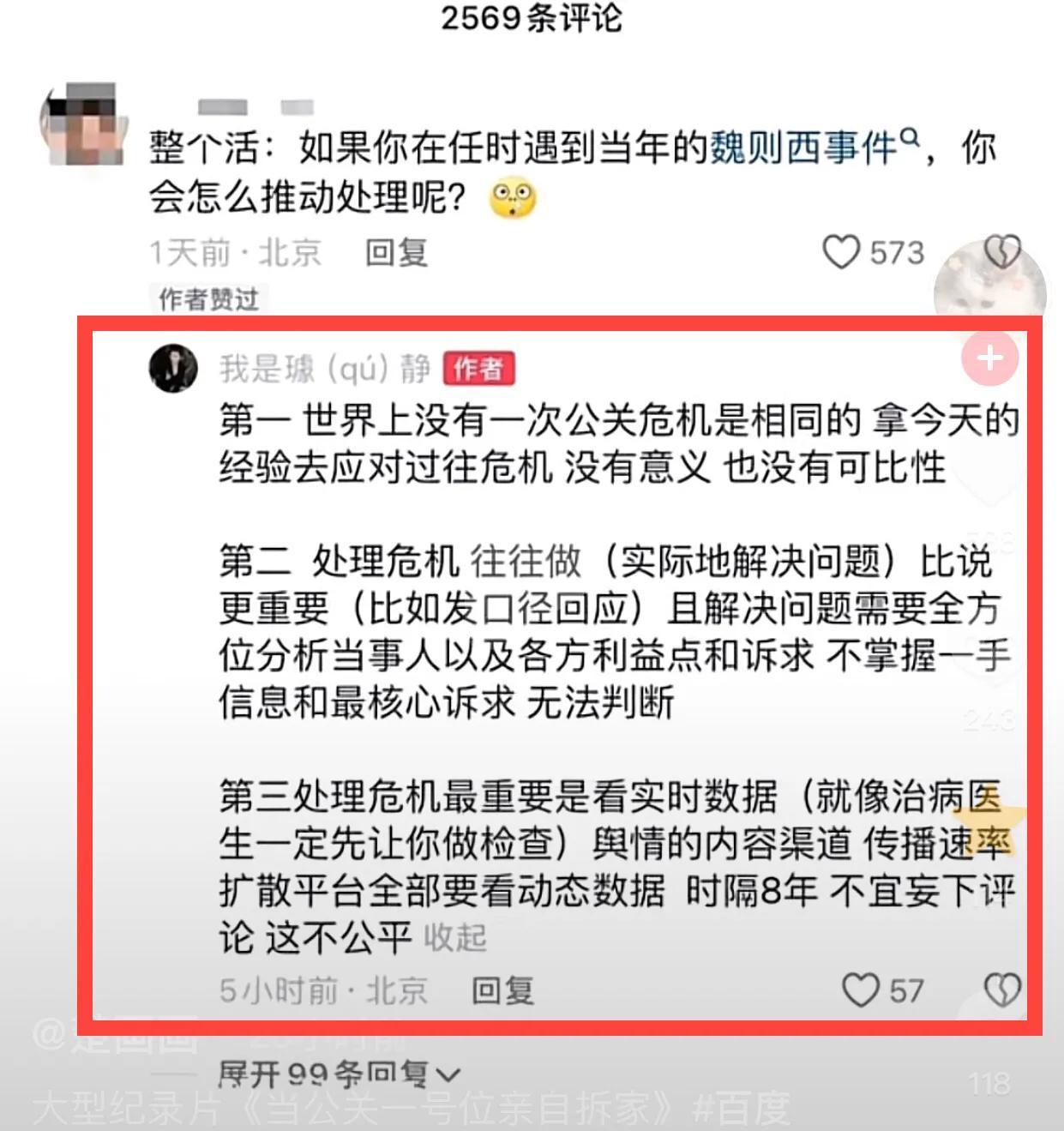 如果一個普通人做這種視頻,大衆網友反而熱衷,說中打工人被老闆管理訓話的痛點,璩靜一個老總這樣把這些話題針對萬千網友肯定不合適,(最好的公關在大衆面前是默默無聞,在公司內部則是名聲大振),如果璩靜那四則職場視頻,在公司內部在正常不過,只要在在職場中混過的人都知道,這些在職場訓話被罵那就是家常便飯,網友上個網,別人不受你管轄,不拿你工資,憑什麼要聽你爹味十足的訓話,網又既能載舟亦能覆舟。