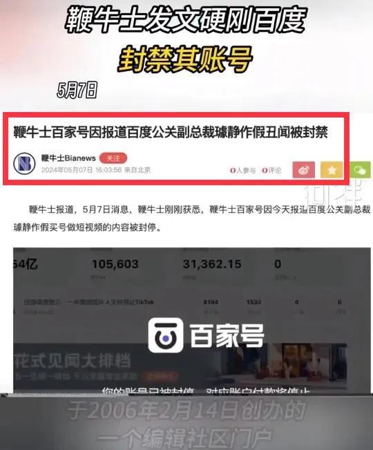 這個事情引發爆點是因爲(鞭牛士)把璩靜事情發到了百度百家號,並且說璩靜這個帳號做假,還是買來的號,然後被百家號把帳號封禁了,結果就推了輿論高峯,璩靜騎虎難下背。