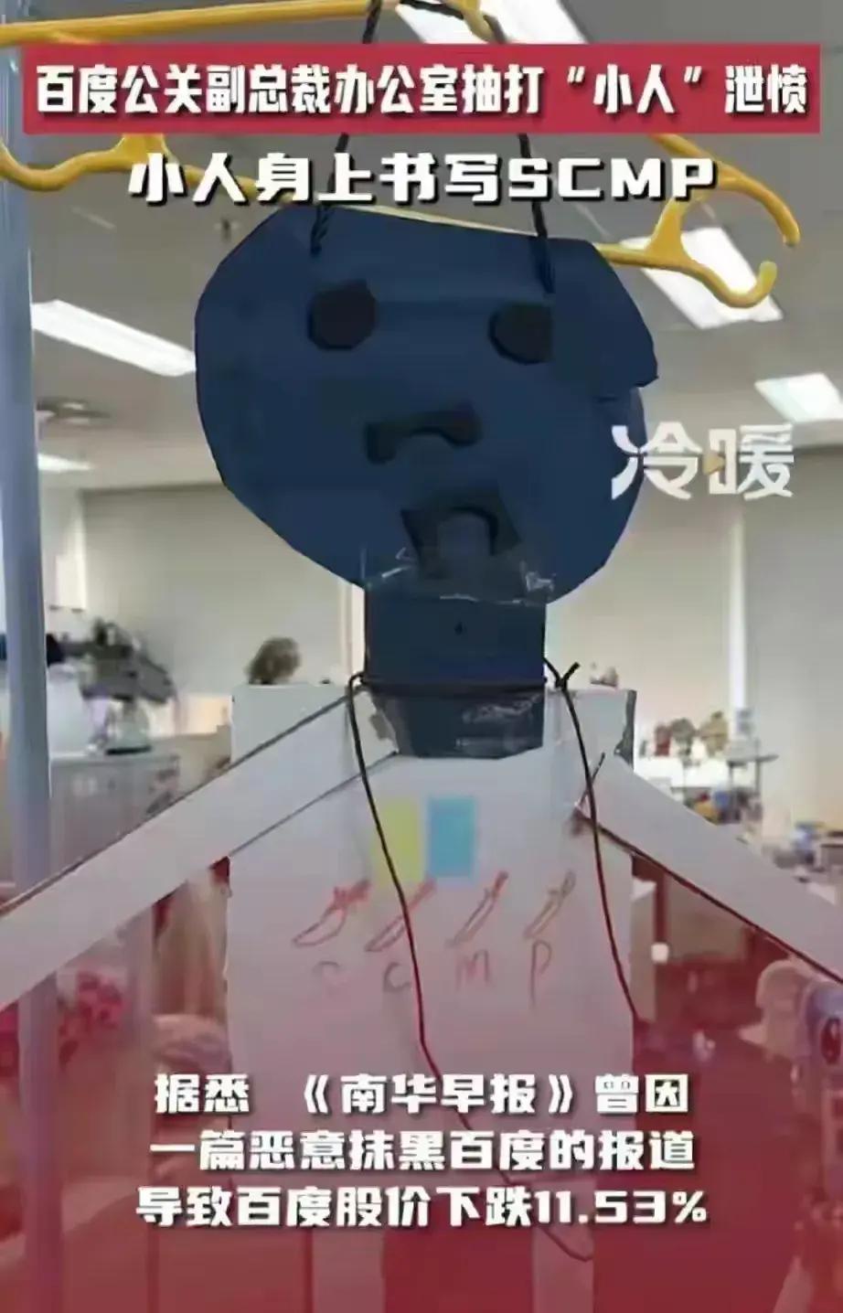 3、有視頻顯示璩靜在辦公室掛了一個小人用鏈子對着打,猜測是工作壓力大泄憤,也有人這樣管理心理太極端。