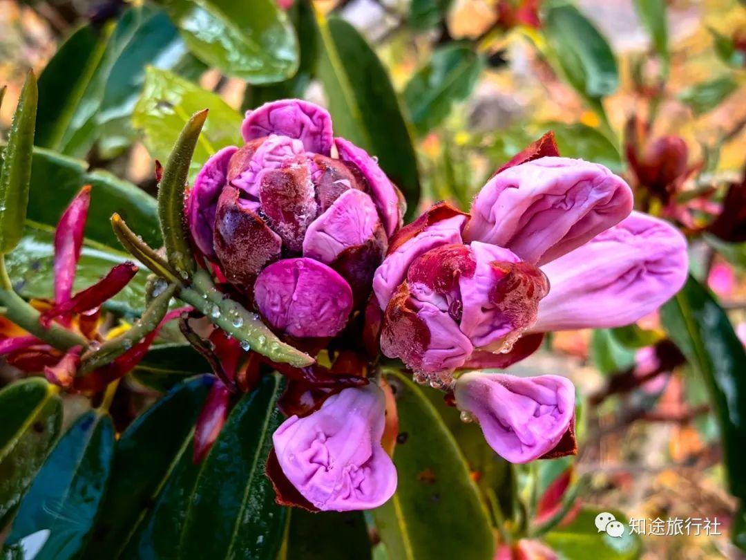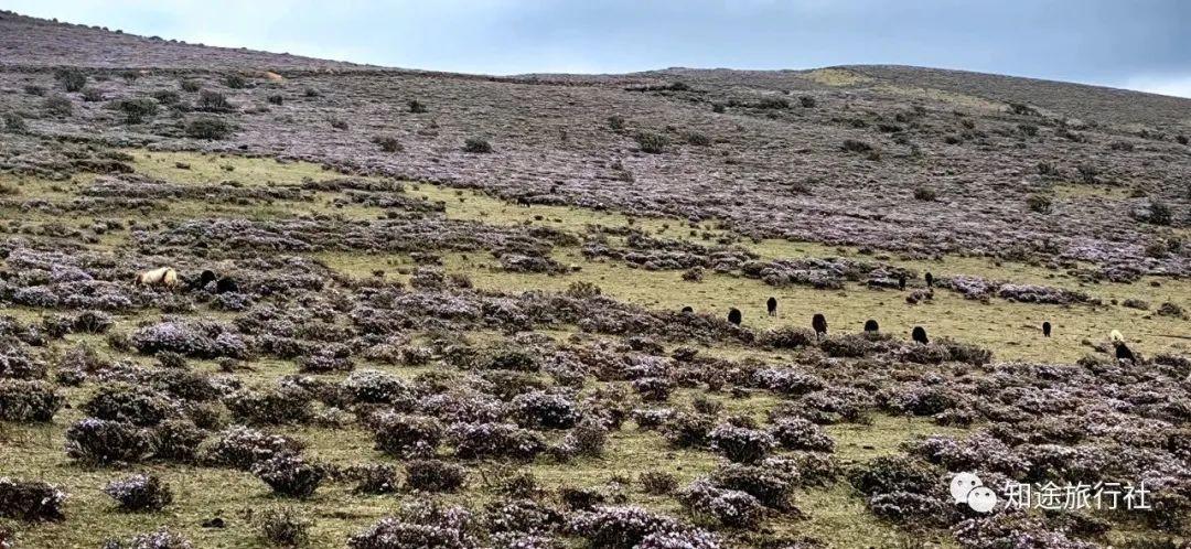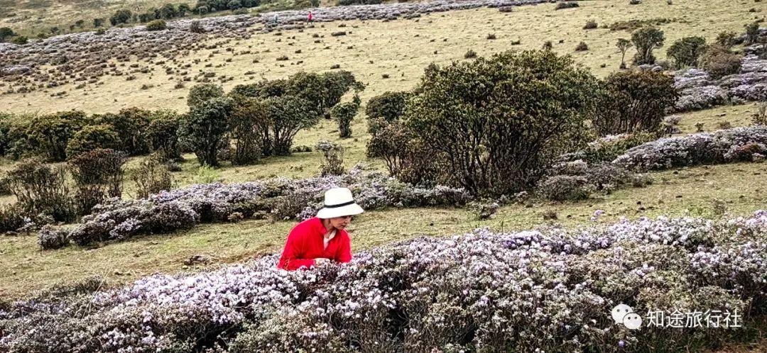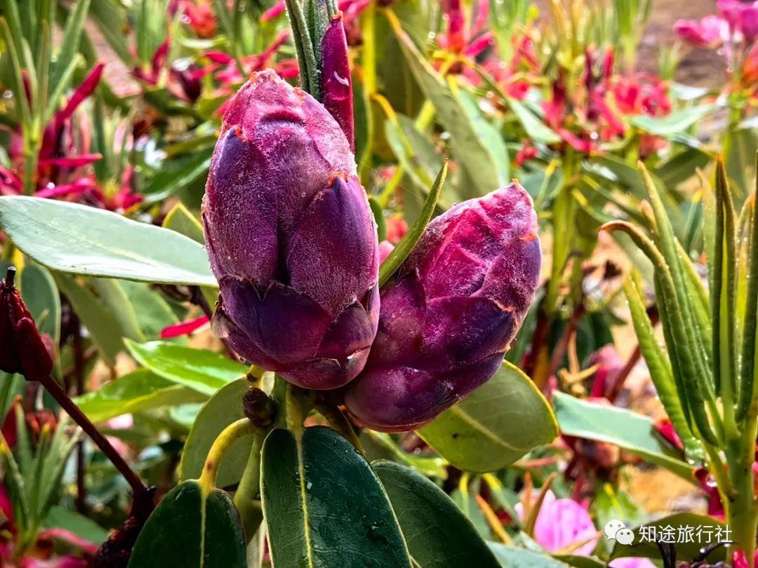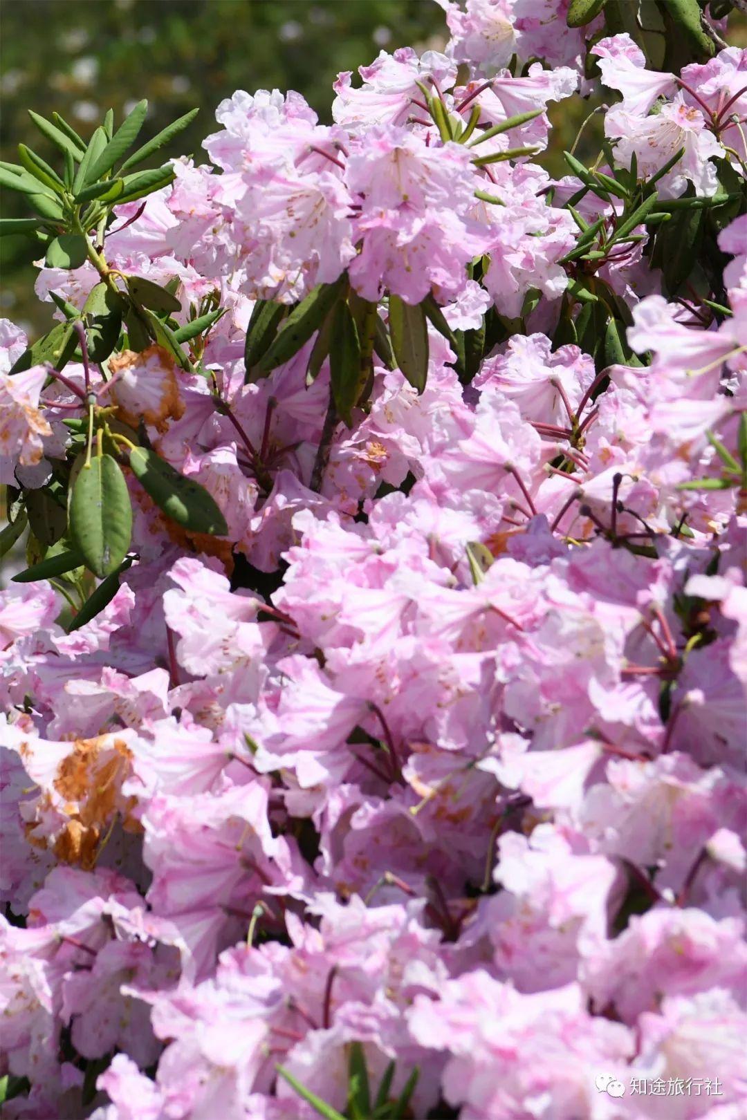 這裏的高山杜鵑,當地稱爲索瑪花,種類繁多,隨着山坡律動起伏,親眼所見才理解“百花齊放”這個詞的真正含義。很多高大的杜鵑樹密集分佈在山頭,這一樹、那一樹,奼紫嫣紅。